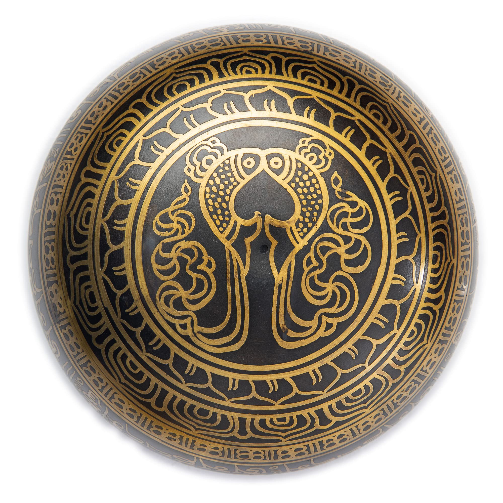 HIMALAYAN BAZAAR Tibetisches Klangschalen-Set, 10,2 cm, einfach zu spielen, authentisch, handgefertigt für Meditation, Klang, 7 Chakra-Heilung (Schwarz/Gelb, 10,2 cm)