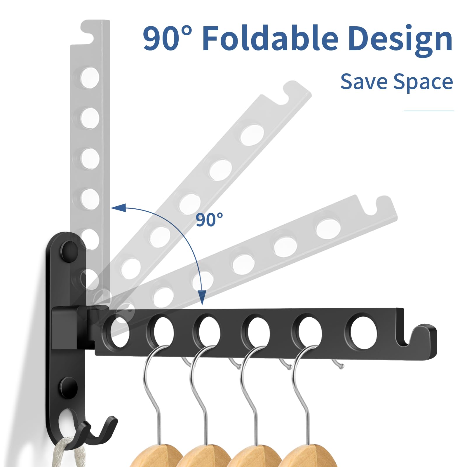 TINIFO Kleiderhaken Klappbar, Wand Kleiderständer Kleiderlüfter Wandhaken Klappbar, Klapphaken für Balkon Waschküche Badezimmer (Schwarz)