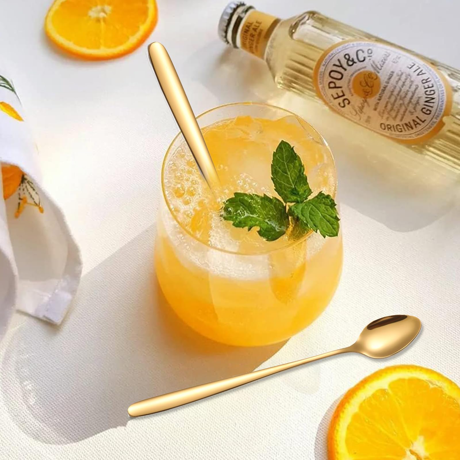 tiokin Latte Macchiato Löffel Set, 6-teilig, 19.8 cm langem Griff Eislöffel lang Rührlöffel aus Edelstahl Ideal für Eiskaffee Eistee Milchshake Eisbecher kühles Trinken(Gold)