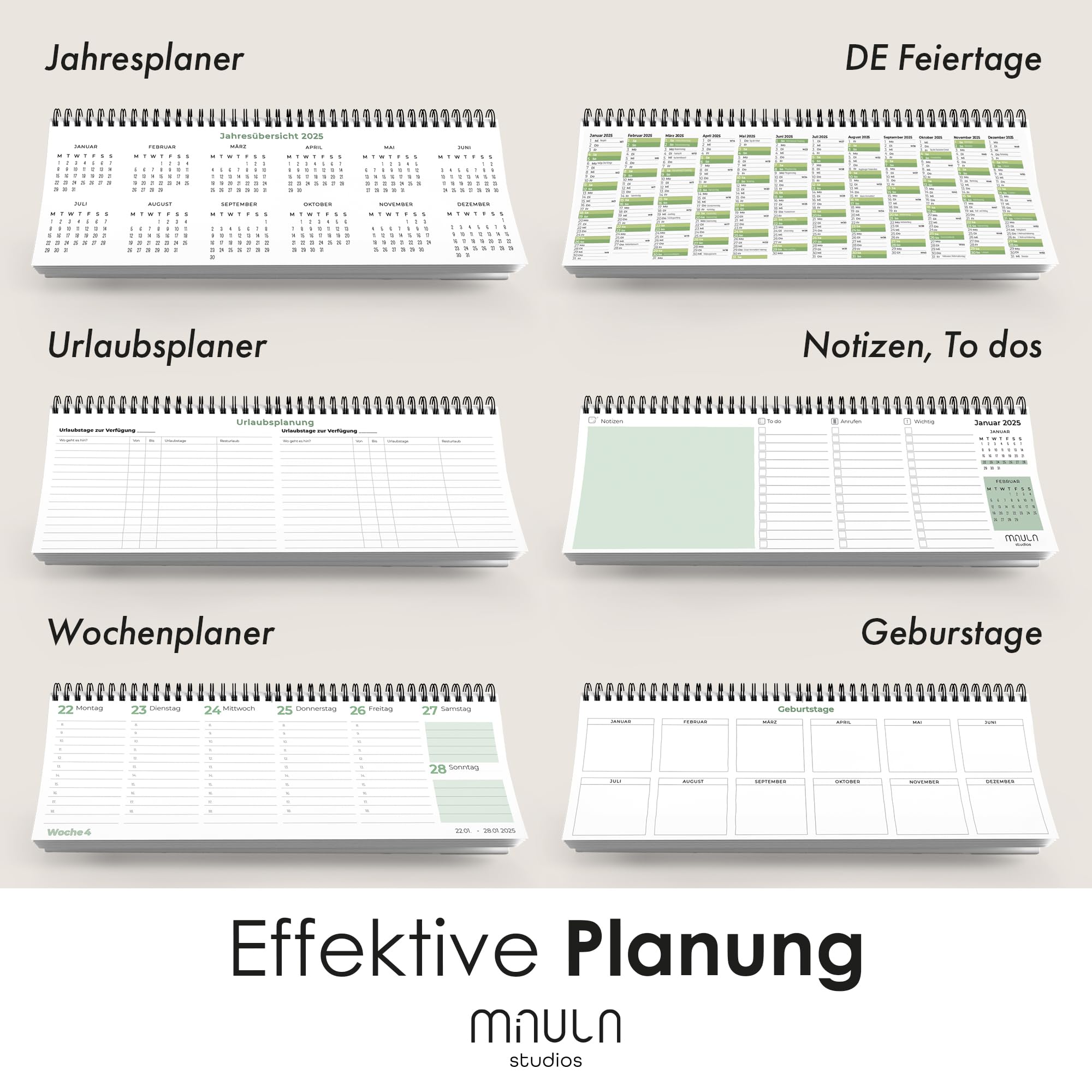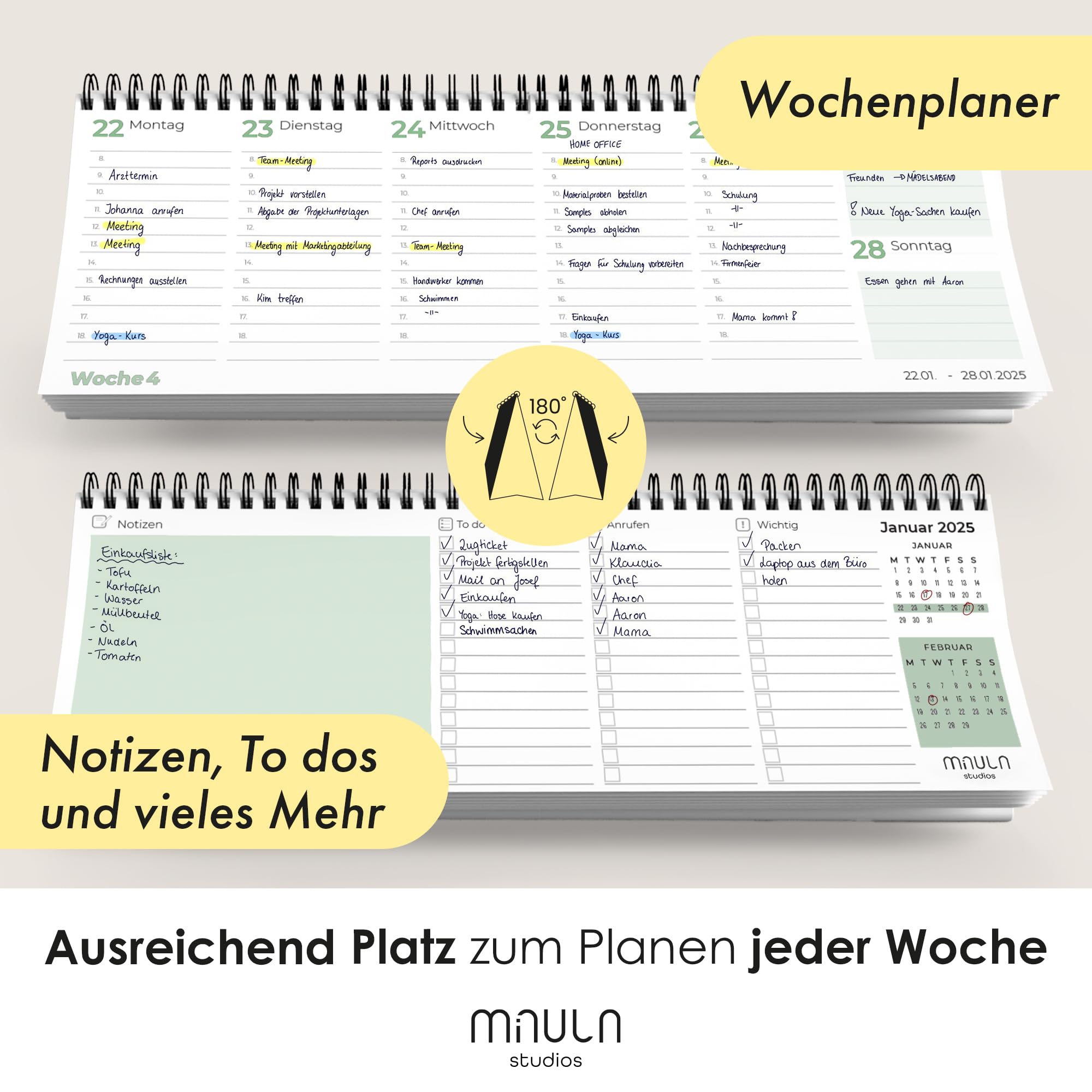 Tischkalender 2025 Quer - Für mehr Organisation & Produktivität - Wochenkalender 2025 für Schreibtisch - Kalender 2025 Tischkalender Wochenplaner 2025