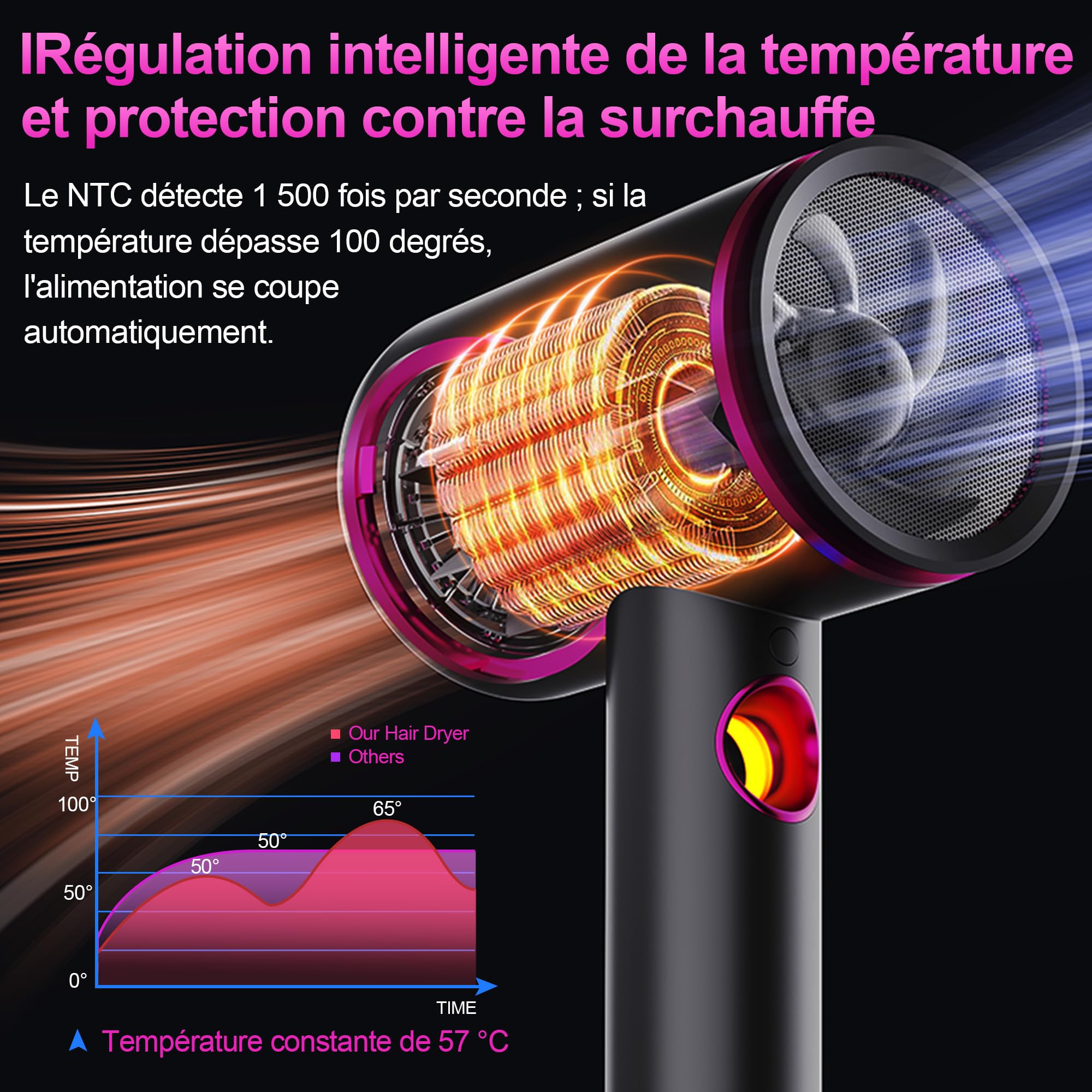 - Dieser Haartrockner verfügt über einen intelligenten konstanten Temperaturschutz, um Ihr Haar zu pflegen. NTC erkennt 1500-mal pro Sekunde, und sobald die Windtemperatur 100° überschreitet, wird der Heizdraht sofort abgeschnitten und behält die Nahrung, Glätte und Ausstrahlung Ihres Haares. Das zweilagige Filterdesign löst effektiv das Problem der Haarabsaugung im hinteren Netz.