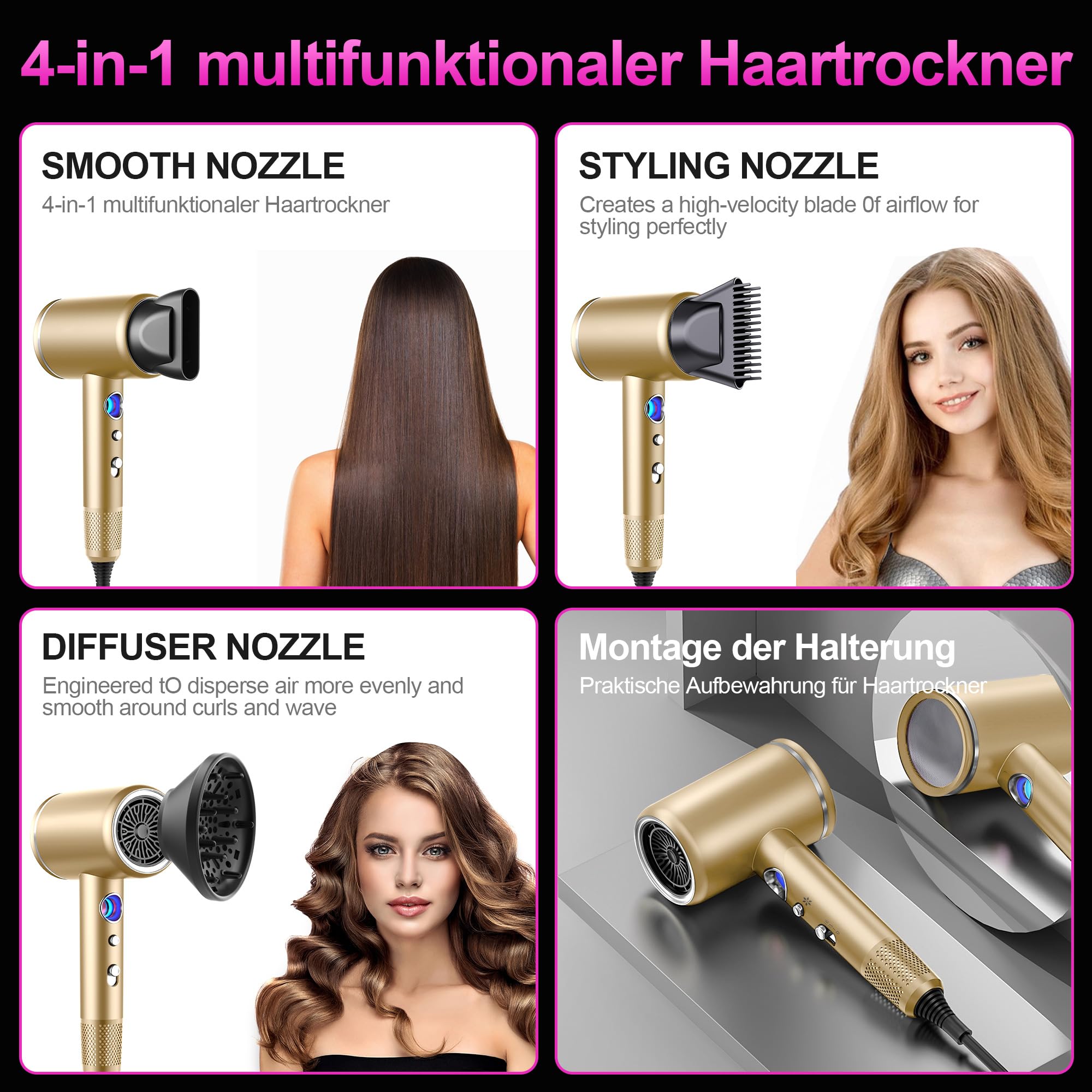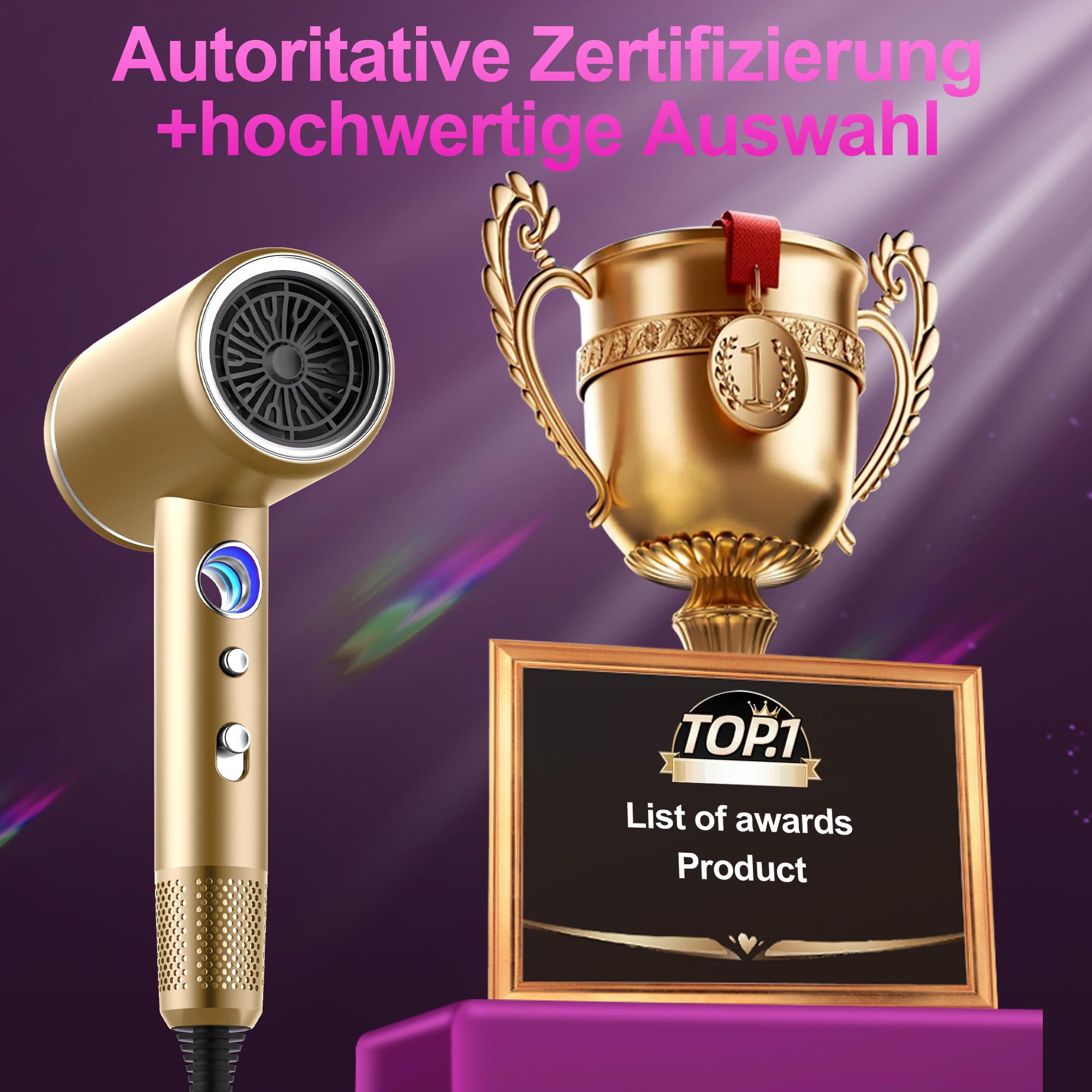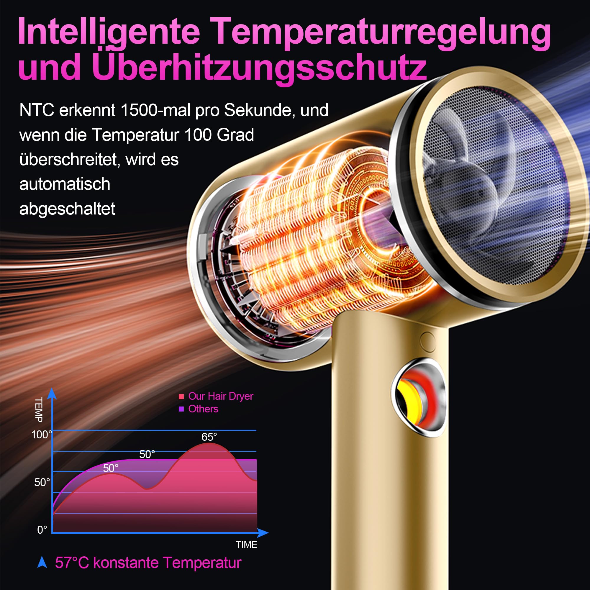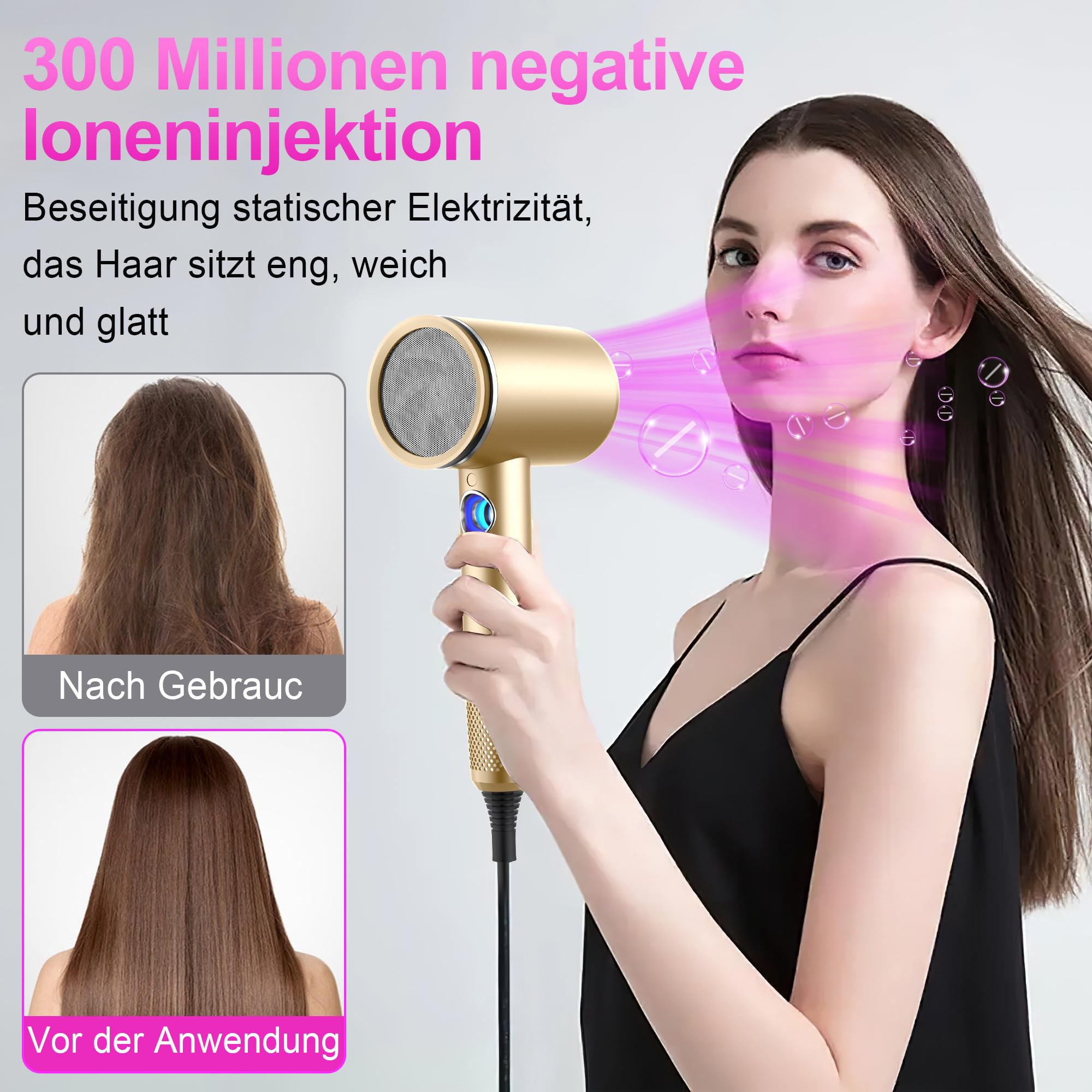 Dieser Haartrockner hat eine ultrastarke Leistung von 2400 W, trocknet schnell, hat eine hohe Konzentration an negativen Duftionen, eine intelligente konstante Temperatur und ist nicht haarschädigend, hat 3 Windschutzpositionen, intelligenten KI-Modus, Haarpflege mit einer Milliarde negativen Ionen, trocknet schnell, ist glatt und nicht rau, importierter Hochgeschwindigkeitsmotor mit 40.000 U/min, niederfrequente Geräuschunterdrückung, biomimetische Haarpflege, 3 intelligente Temperatursensoröffnungen. Dieser Haartrockner steht konstant an der Spitze der Bestsellerliste und verfügt über eine Technologie zur Verdoppelung des Luftstroms, einen Motor mit 40.000 U/min, 22 Meter pro Sekunde (starke Winde auf Hurrikan-Niveau) und eine von über 3.000 Stunden. LED-Lichtringanzeige, mehrere Windtemperaturen für alle Jahreszeiten, hochwertiger galvanischer Schalter, längere und dauerhaftere . Dieser Haartrockner verfügt über einen intelligenten Konstanttemperaturschutz zur Pflege Ihres Haares. NTC erkennt 1500 Mal pro Sekunde, und sobald die Windtemperatur 100° überschreitet, wird der Heizdraht sofort unterbrochen, wodurch Ihr Haar gepflegt, geschmeidig und glänzend bleibt. Das doppelschichtige Filterdesign löst effektiv das Problem des Haaransaugens im hinteren Netz. Dieser Haartrockner verwendet ultraleise Technologie und moderne Motoren können den Geräuschpegel erheblich reduzieren, sodass Sie Ihr Vergnügen während der Nutzung steigern und eine ruhigere und gesündere Umgebung schaffen können. Mehrere Modusauswahl: Dieser Haartrockner hat zwei Modi zur Auswahl, heiss und kalt. Jeder Modus hat drei einstellbare Stufen und bietet ein multifunktionales und schnelles Trocknungserlebnis für jede Jahreszeit. Schnelles Styling, Sommer, Kaltluftmodus sorgt für Kühle und Stabilität, Winter, Heissluftmodus ermöglicht schnelles Trocknen und Wärme und Frühling und Herbst, Warmmodus schützt das Haar sanft. Erfüllt alle Ihre Bedürfnisse.