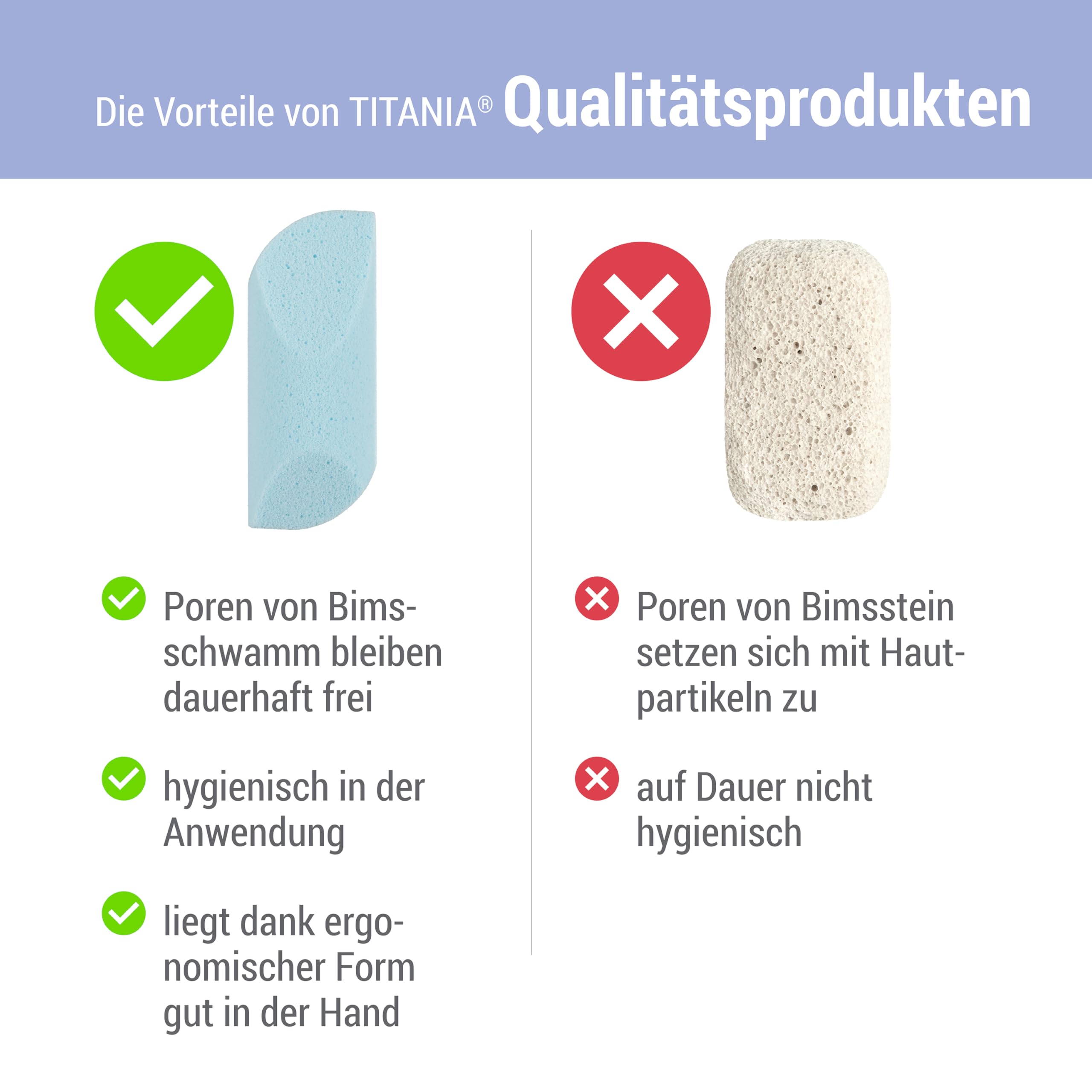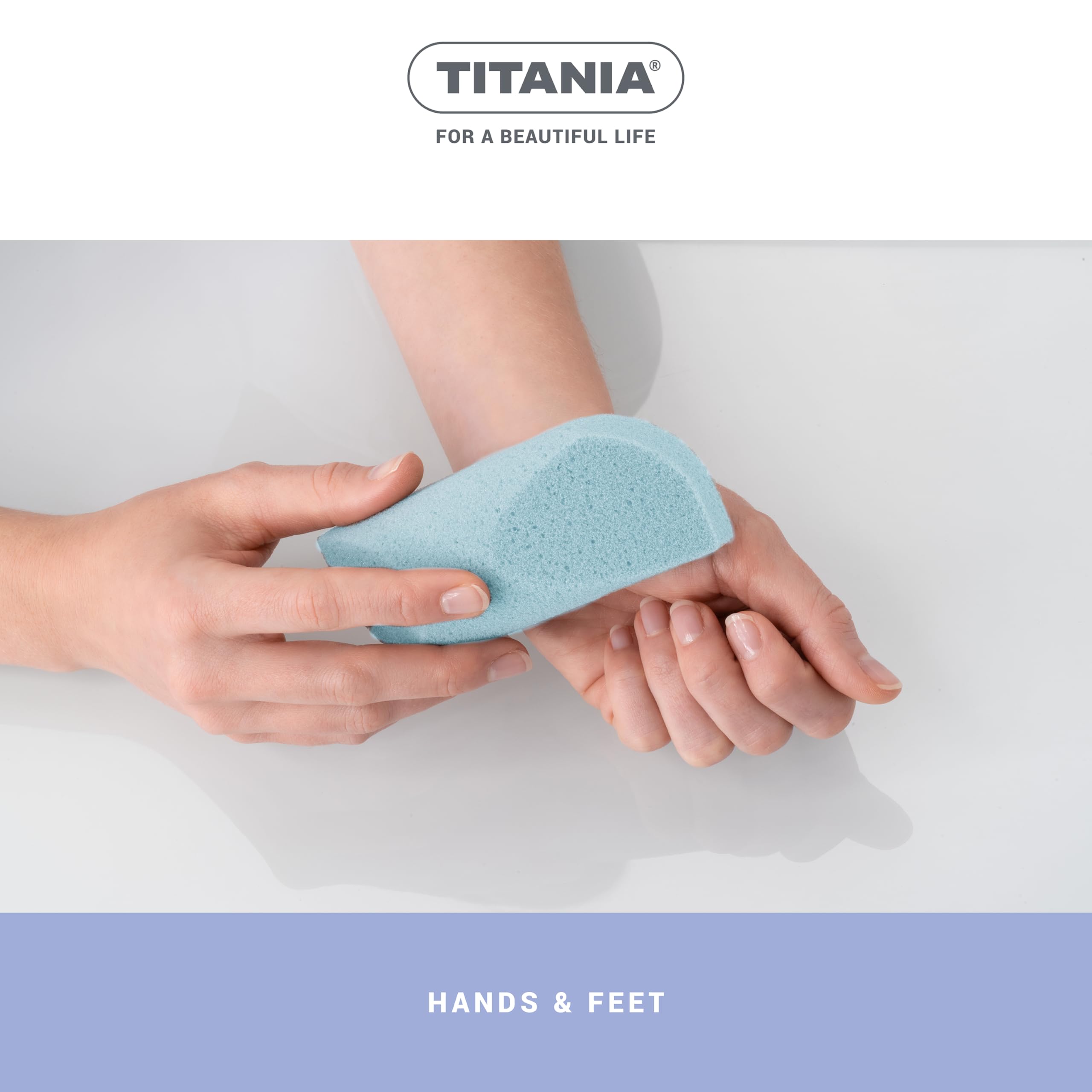 TITANIA Bimsschwamm Antibakteriell (abgerundet) • Bimsschwamm für Hand- & Fusspflege • Ergonomisch geformter Hornhautentferner • Bimsschwamm Fusspflege • Made in Germany • Bimsschwamm für Füsse und Hände