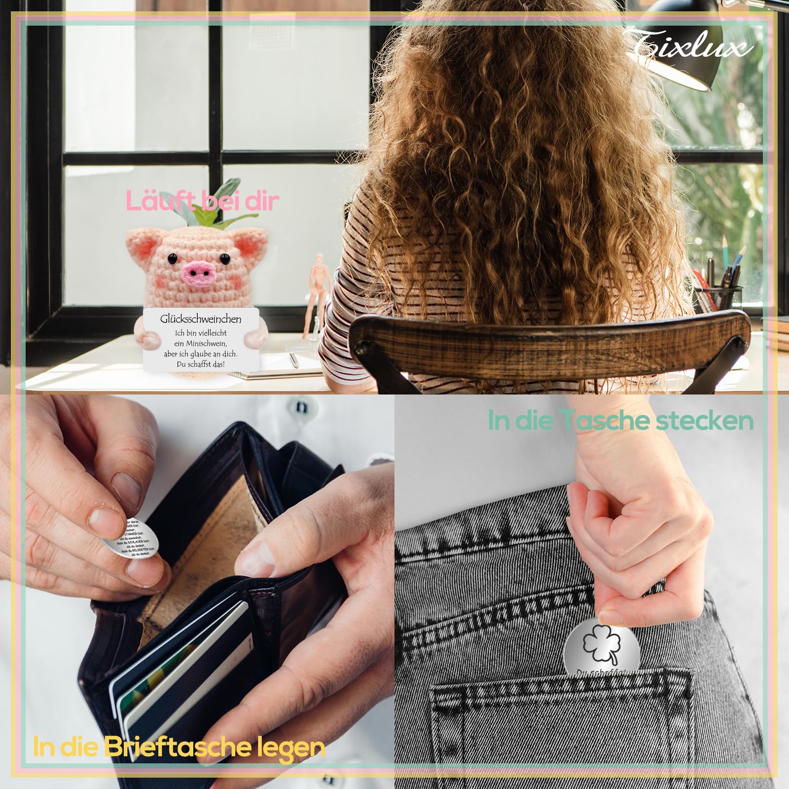 - Winzig & Tragbar- Die niedliche Strickminischweinpuppe (5 x 7cm) und vierblättrigen kleeblatt Glücksbringer (Ø3cm) sich einfügen tasche und kann überallhin mitgenommen werden.