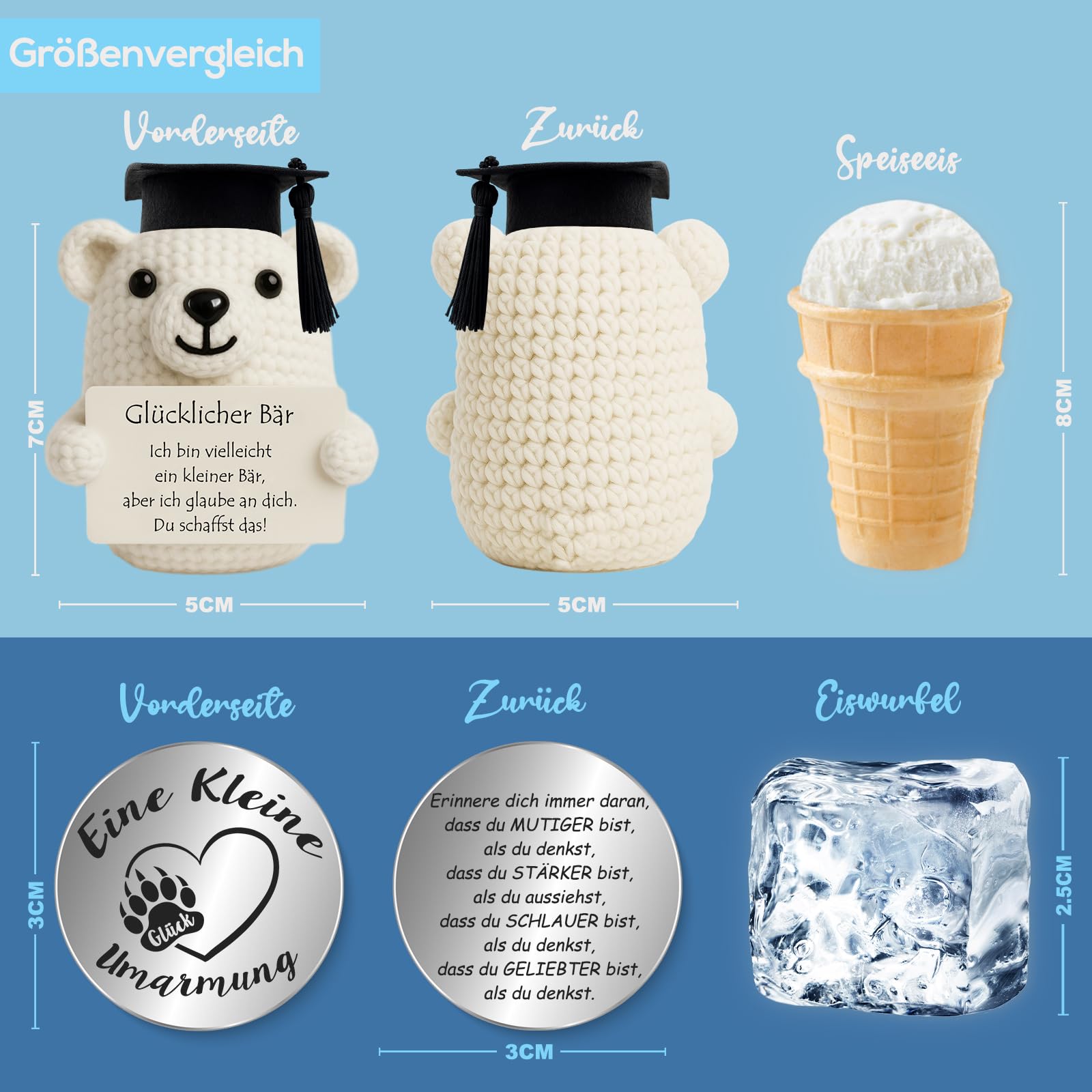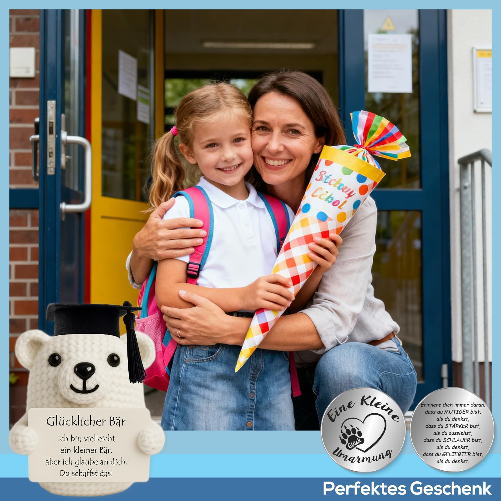 - ???? Glücklicher Bär mit Doktorhut – Dies ist ein niedlicher kleiner Bär mit Doktorhut, der dich und deine Liebsten ermutigt. Er steht für Erfolg, Glück und neue Anfänge – perfekt, um jemandem zu gratulieren oder Mut zu schenken.