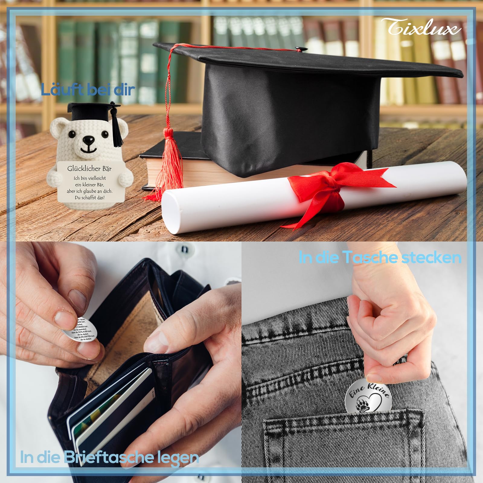 - ???? Perfektes Geschenk – Ein symbolisches Geschenk für Absolventen, Studenten und Freunde, das Glück, Erfolg und gute Wünsche überbringt. Ideal zur Abschlussfeier oder für jemanden, der einen neuen Lebensabschnitt beginnt. Im Lieferumfang enthalten: 1 x Glücklicher Bär Puppe und 1 x Bärentatzen-Token (Silber).