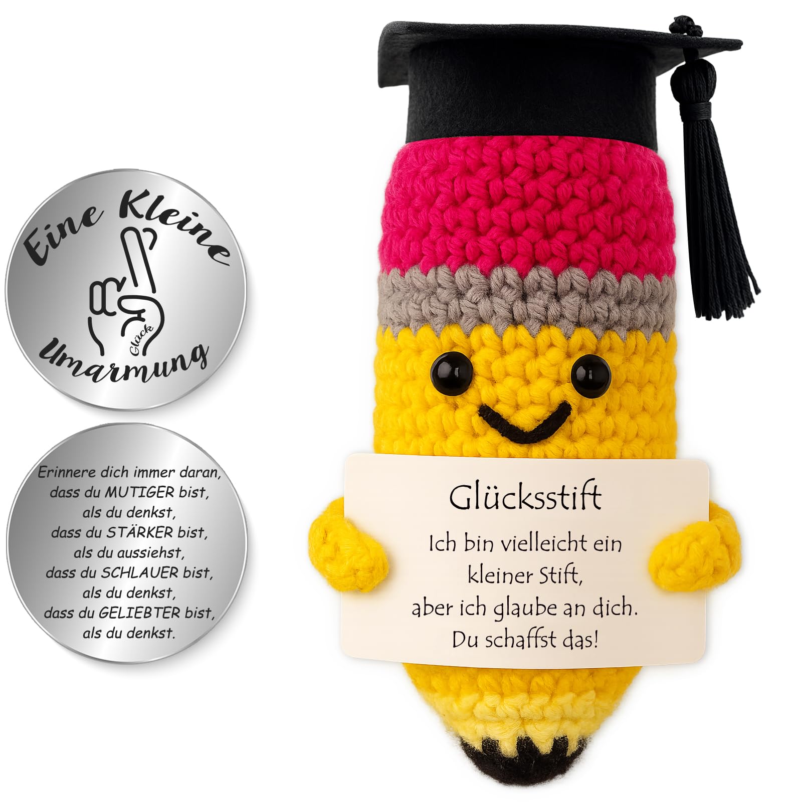 - ???? Perfektes Geschenk – Ob zur Aufmunterung, zum Schulabschluss, zur Prüfung, zum Jobwechsel, für den Berufseinstieg oder einfach als liebe Geste – der Glücksstift mit Token ist ein bedeutungsvolles Geschenk, das positive Energie und gute Wünsche für neue Lebensabschnitte überbringt. Im Lieferumfang enthalten: 1 x Glücksstift-Puppe und 1 x Glücks-Token (Silber).