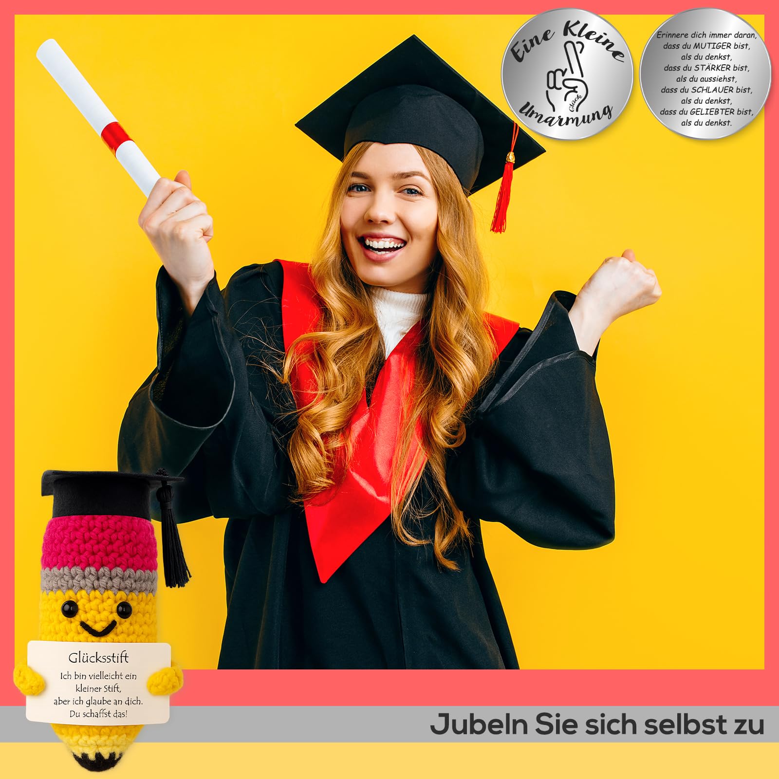 - ???? Glücksstift mit Doktorhut – Dies ist ein liebevoll gestalteter Glücksstift mit einem kleinen Doktorhut, der dich und deine Liebsten mit einer positiven Botschaft ermutigt. Er steht für Erfolg, Wissen und neue Chancen – perfekt, um Trost zu spenden, Mut zu machen und Freude zu schenken. Ideal als Glücksbringer vor einer Prüfung oder zum Schulabschluss.