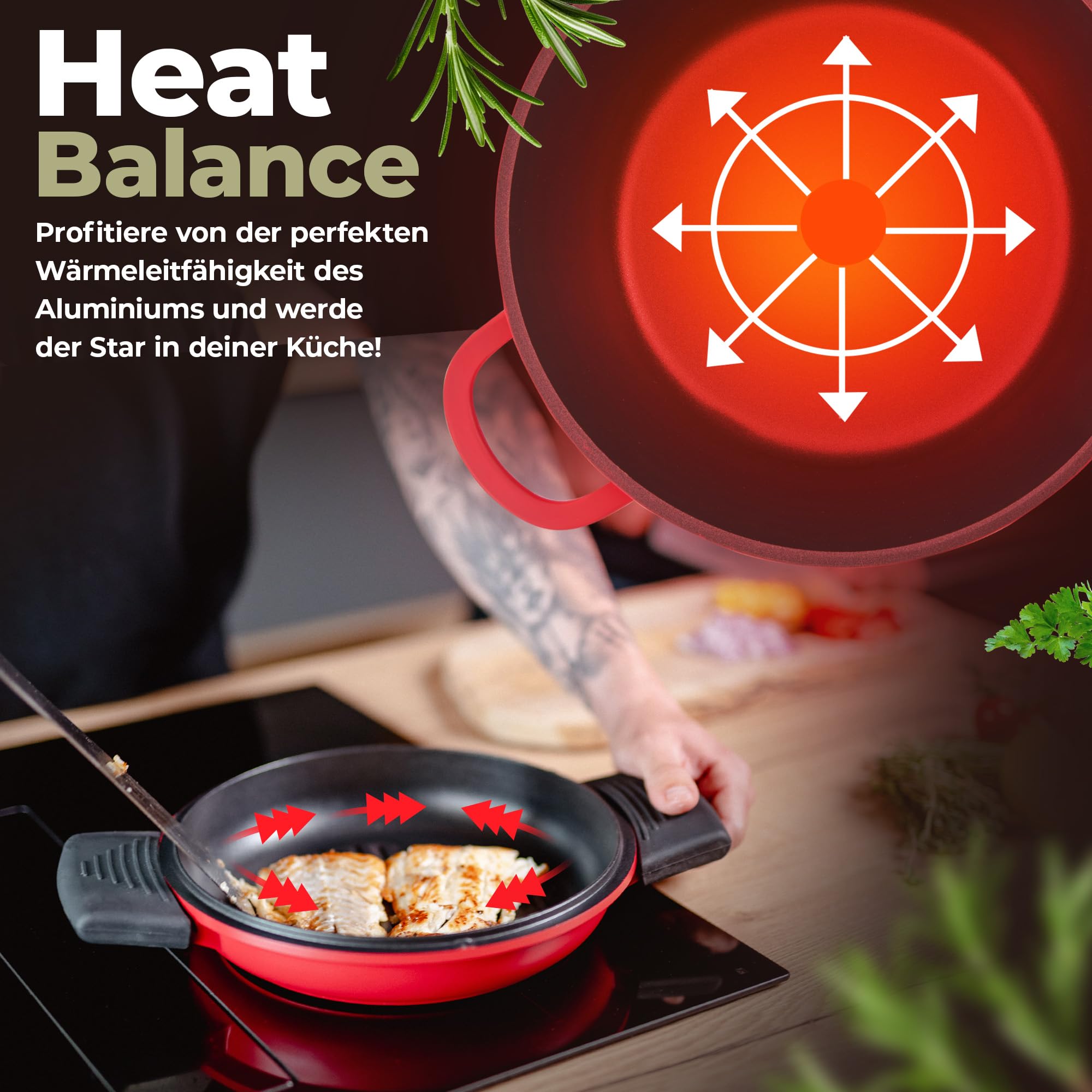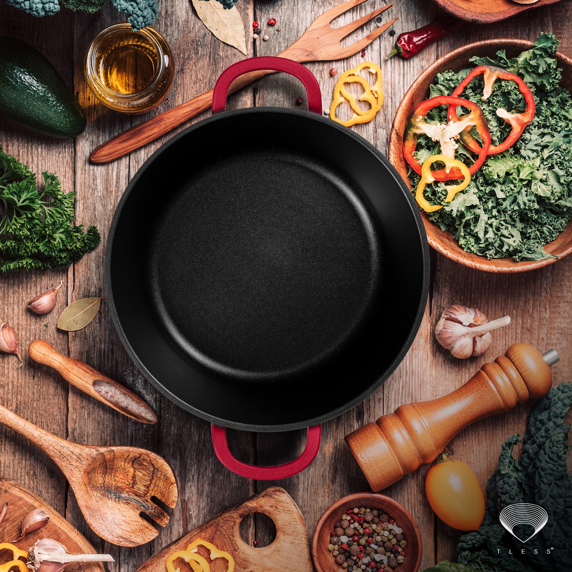 Die beste Alternative zum Gusseisen Bräter. Durch die Iron Protection Technoligie werden Sie mit dem Bräter von TLESS ein Gefühl von Leichtigkeit verspüren. Ob die Funktion von einem Gusseisen Topf, Schmortopf oder Bräter mit Deckel backofengeeignet. Mit dem TLESS Bräter Induktion entstehen grossartige Kreationen. Als Vergleich zum Bräter Gusseisen oder Schmortopf Gusseisen haben Sie ein deutlich leichteres Gewicht. Als Testsieger in der Kategorie Bräter & Schmortöpfe ist der Bräter von TLESS die perfekte Wahl. Ob als Schmortopf Induktion oder Schmortopf backofengeeignet, mit dieser Cocotte decken Sie alle Gerichte ab. Auch im Vergleicht zum Emaille Topf haben Sie die perfekte Antihafteigenschaften durch die Lotus Patina. Ab jetzt können Sie wie im Gusseisen Topf Brot backen und Ihren Römertopf durch den TLESS Bräter ersetzten. Auch als Gänsebräter oder Auflaufform mit Deckel ist es ein treuer Begleiter.