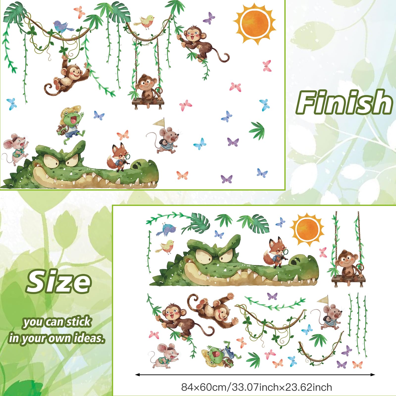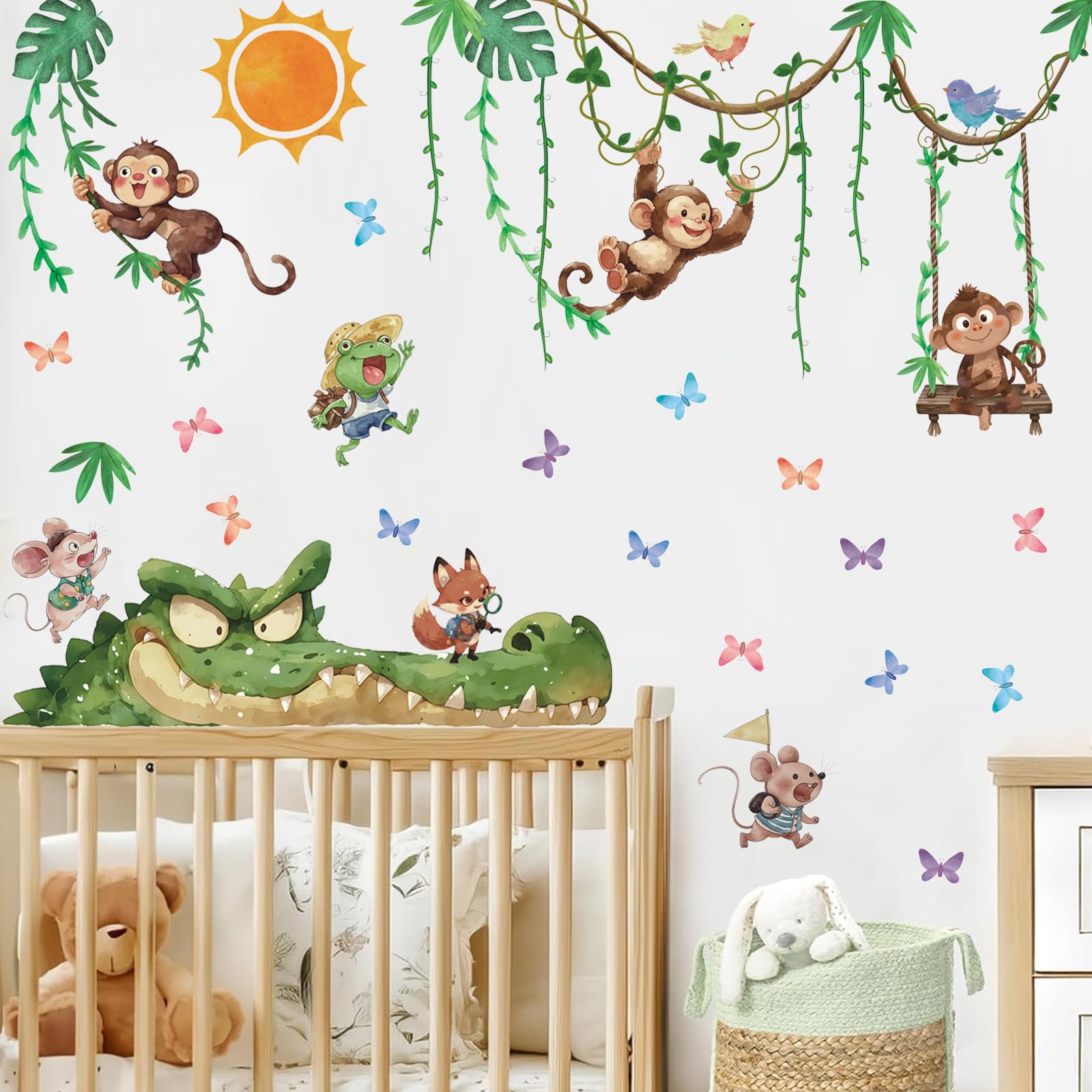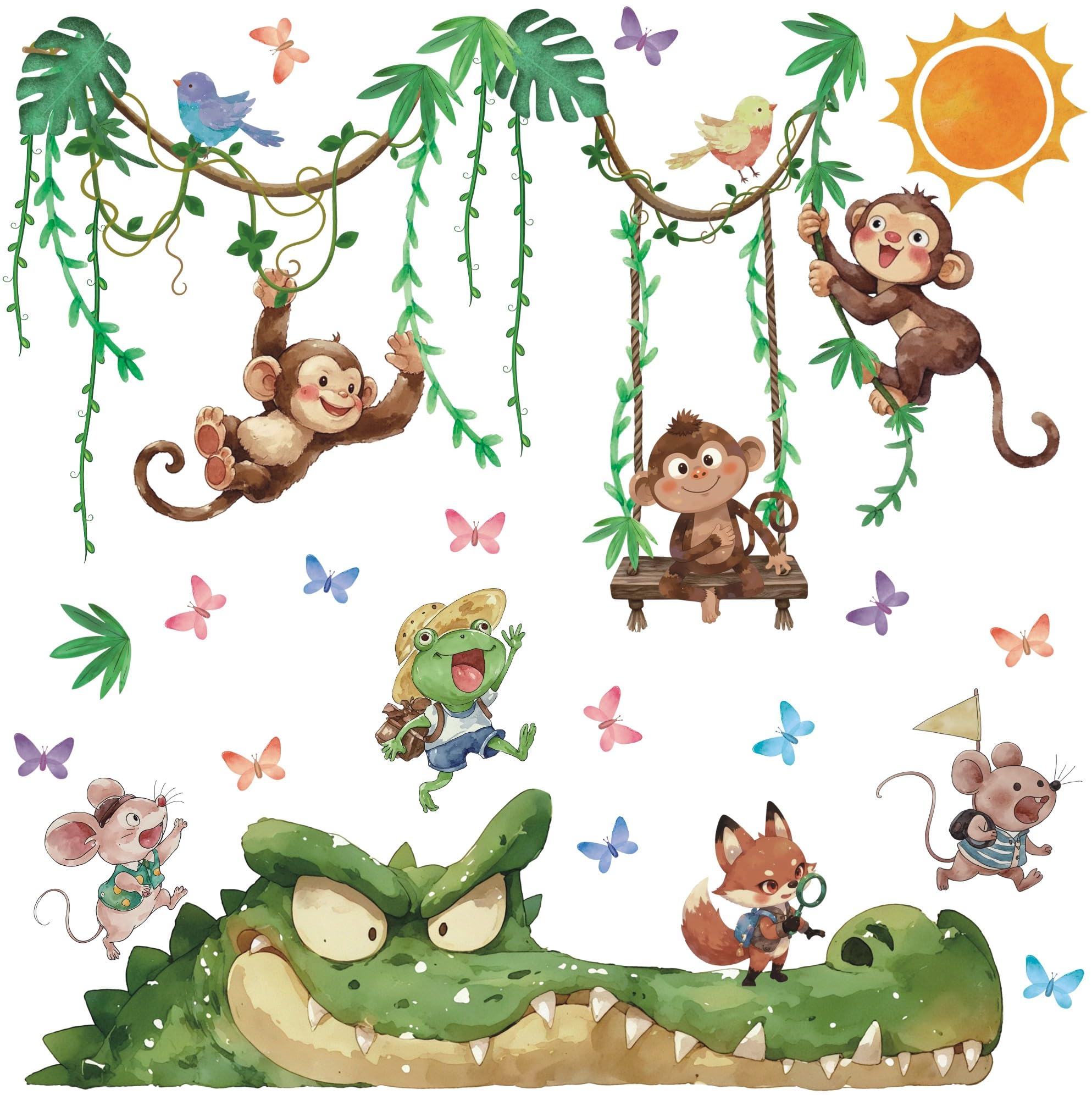 TOARTI Wandtattoo Dschungel Tiere Reben Wandaufkleber Affen Krokodil Safari Tiere Wandsticker Kinderzimmer Babyzimmer Schlafzimmer Wanddeko