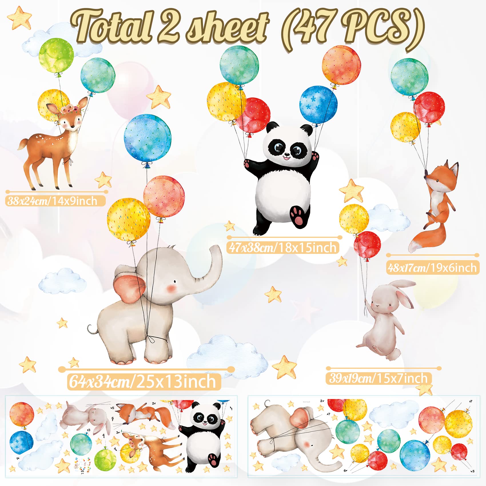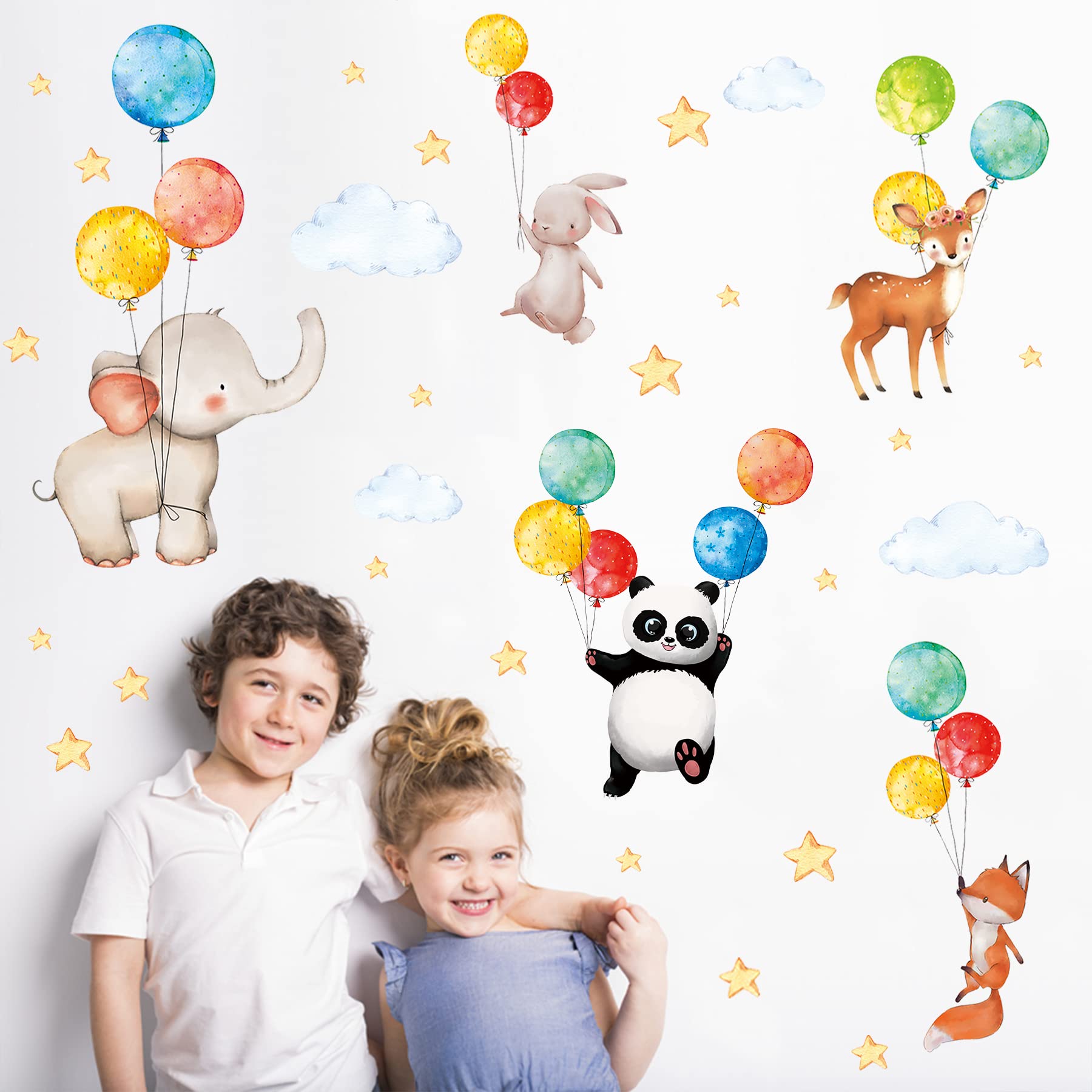 TOARTI 47 Stück Wandaufkleber Kinderzimmer Tiere, Aquarell Wandsticker Babyzimmer, Ballon Tier Wanddeko, DIY Fuchs Hase Deko für Junge Mädchen Schlafzimmer