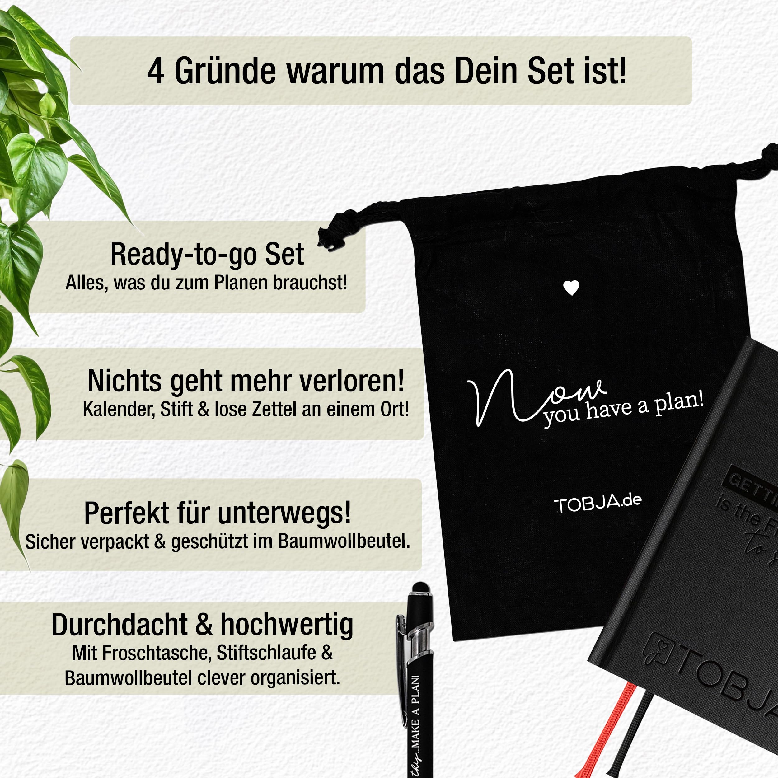 TOBJA Taschenkalender 2026 A6 Denim + Zubehör Set - Dein perfekter Begleiter für ein strukturiertes Jahr???????????????????? ???????????? ???????? ????????????????????????????????Unser TOBJA Taschenkalender 2026 bietet dir alles, was du für deinen Alltag benötigst. Dieser Hardcover Kalender im handlichen A6-Format kommt mit praktischen Tools: einer Froschtasche, einer Stiftschlaufe, einem hochwertigen Stift und einem eleganten Baumwoll-Beutel. Perfekt organisiert ins neue Jahr starten!???????????????????????????????????????????????? - Ordnung leicht gemachtDie selbstklebende Froschtasche ist ideal zum Einstecken von Zetteln, Visitenkarten oder Erinnerungsfotos. Einfach auf der letzten Seite des Jahresplaners 2026 einkleben und wichtige Notizen stets griffbereit haben.????????????-???????????????? - Immer bereit zum SchreibenMit der selbstklebenden Stiftschlaufe hast du deinen Stift immer parat. Kein langes Suchen mehr – einfach einkleben und schon ist der edle Kugelschreiber immer an deinem Kalenderbuch.???????????????????????????????????????????????????????? - Mehr als nur SchreibenDer elegante Stift in Schwarz-Silber sieht nicht nur gut aus, sondern ist auch praktisch. Dank der Touch-Funktion kannst du dein Handy oder Tablet problemlos bedienen.???????????????????????? - Nachhaltigkeit trifft StilUnser 100% Baumwoll-Beutel in edlem Schwarz ist nicht nur stylish, sondern auch nachhaltig. STANDARD 100 by OEKO-TEX zertifiziert und von uns mit Liebe bedruckt. Die Marke TOBJA steht für höchste Qualität und Liebe zum Detail.Warum der TOBJA Taschenkalender 2026?Perfekte Grösse: Handliches A6-Format, das in jede Tasche passt.Hochwertige Materialien: Robust und langlebig für den täglichen Gebrauch.Komplett-Set: Alles, was du brauchst, in einem praktischen Set.Starte organisiert und stilvoll ins Jahr 2026 mit dem TOBJA Taschenkalender. Bestelle jetzt und erlebe den Unterschied!