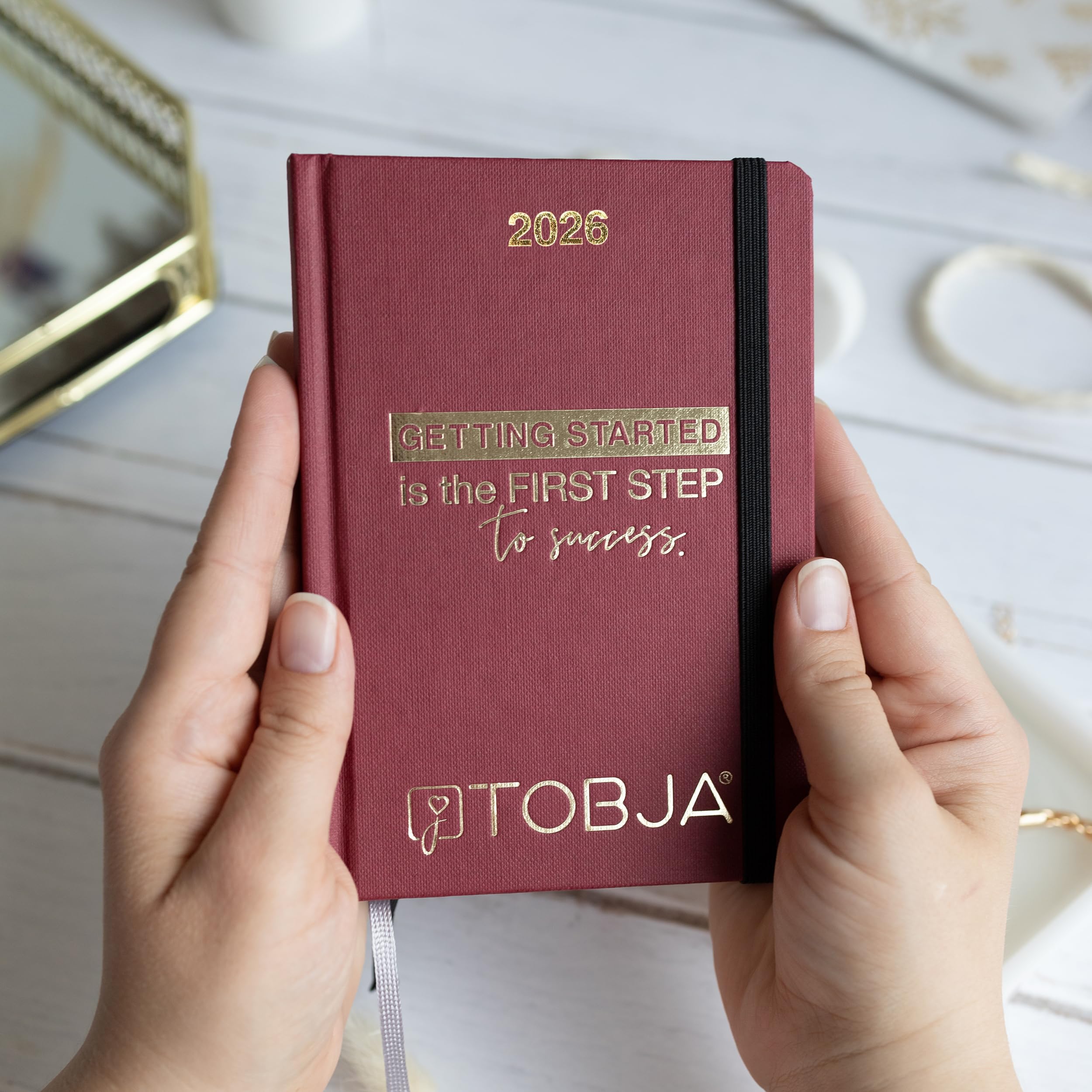 TOBJA Taschenkalender 2026 A6 rot - 1 Woche 2 Seiten, Robustes Hardcover, Taschenkalender 2026 klein, Ferien & Feiertage, 2 Lesebändchen & Gummiband, Kalender 2026 a6 [red]