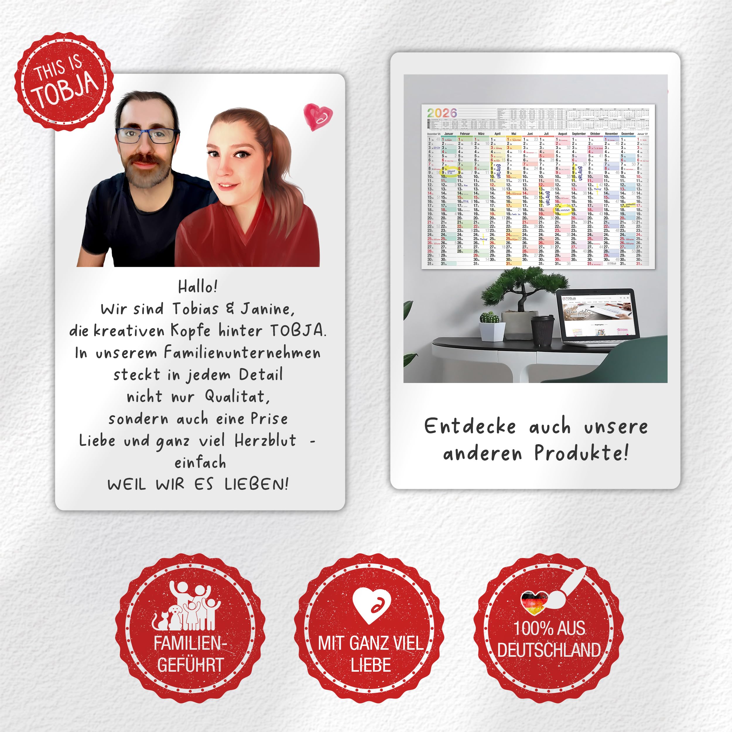 Der hochwertige Druck und die langlebige Oberfläche sorgen dafür, dass Ihr Kalender das ganze Jahr über wie neu aussieht.Ob als Jahresplaner 2026 oder als dekorativer Kalender 2026 mit Feiertagen – dieser XXL Wandkalender 2026 wird all Ihre Bedürfnisse erfüllen.