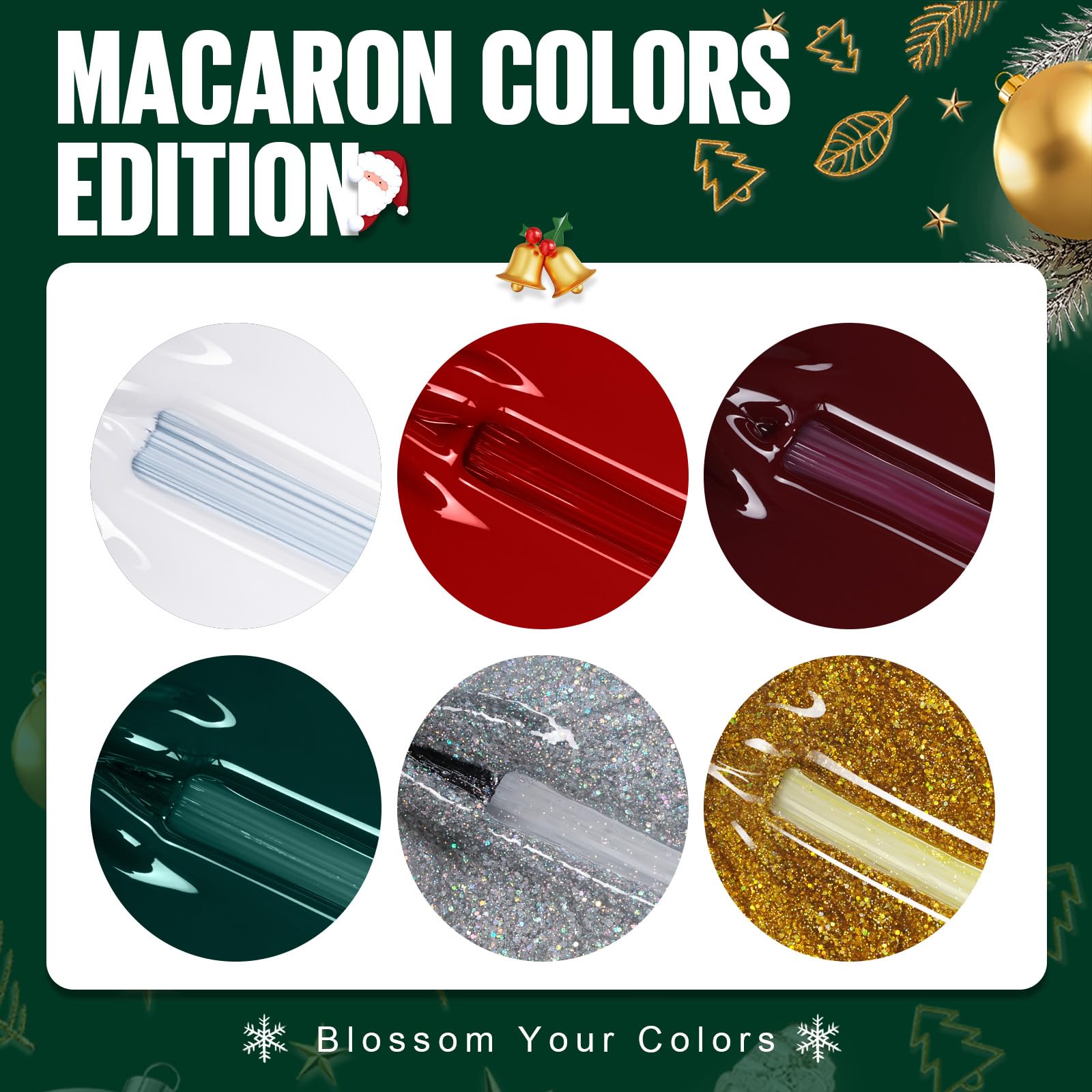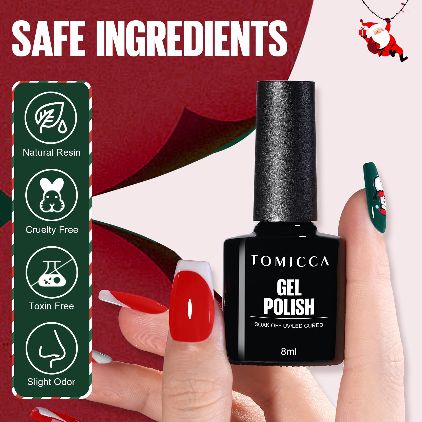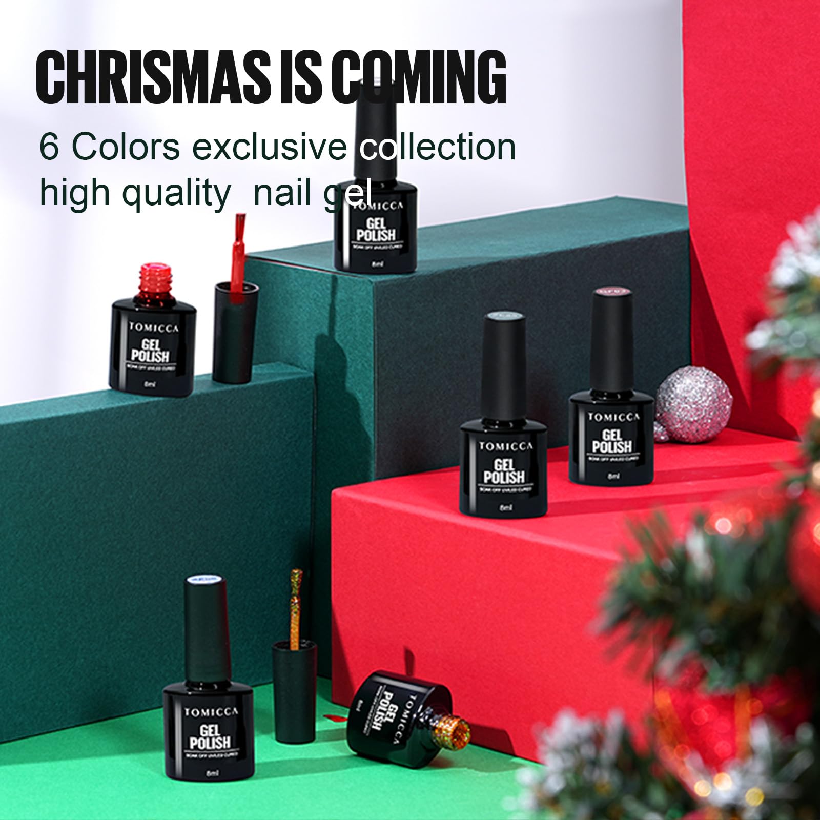 TOMICCA UV Gel Nagellack Weihnachten Set, 6 Farben Rot Grün Weißer Glitzer Nagellack, Soak-Off UV/LED Gel Geschenk für Nagelstudio DIY Home, 8ML
