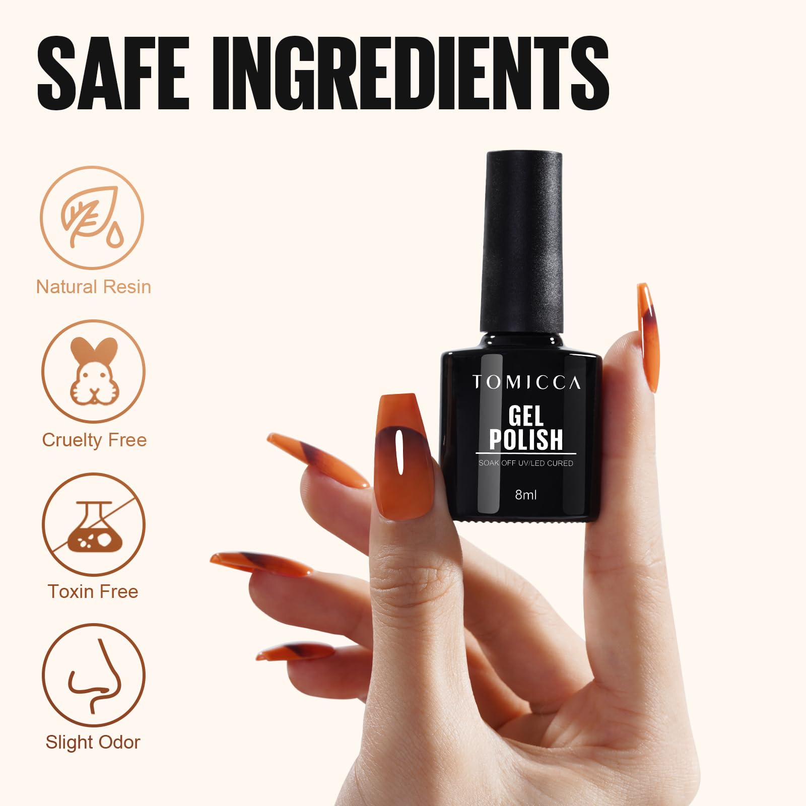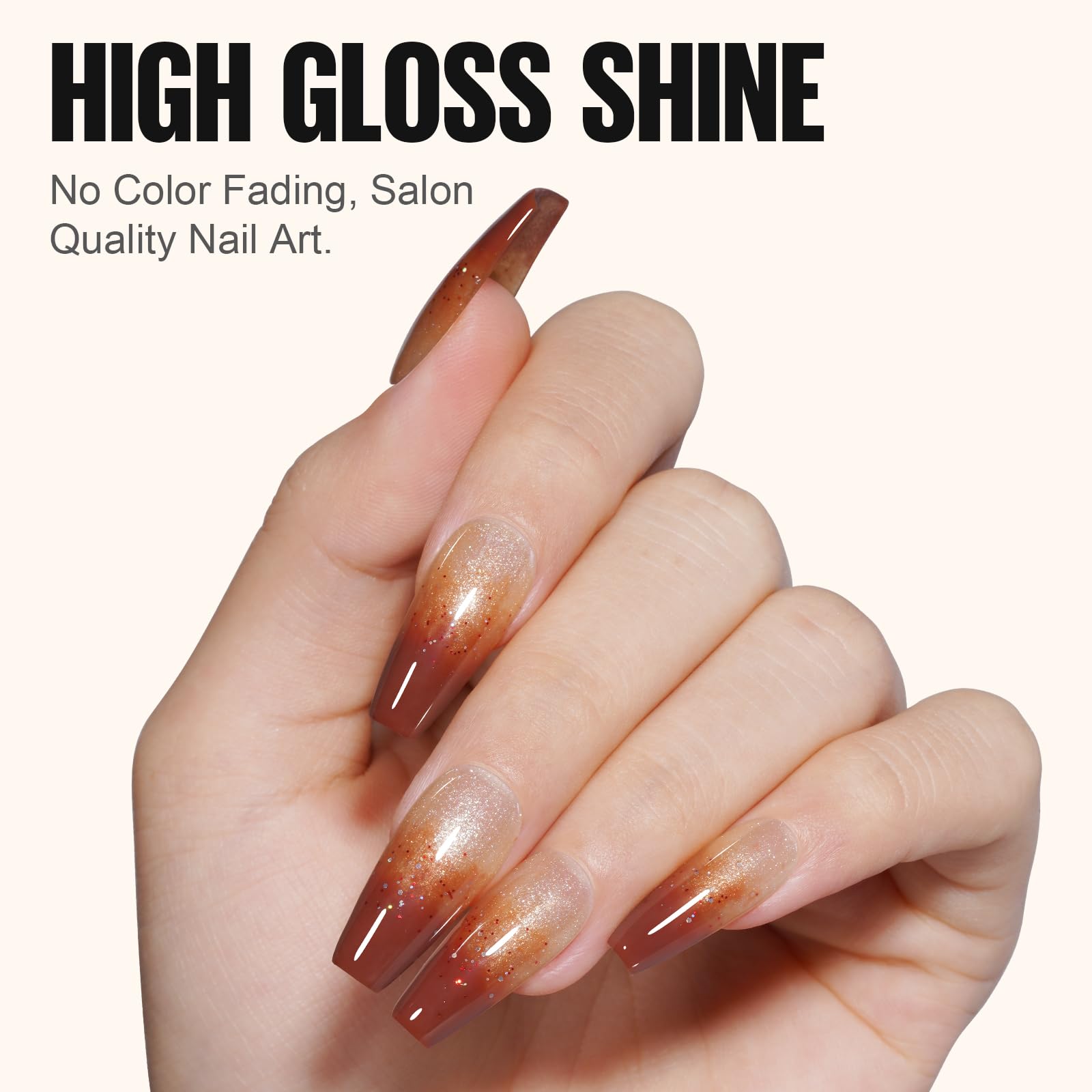 TOMICCA UV Nagellack Braun Set mit 4 Farben, Herbst Braun Glitzer Gel Nagellack 8 ml