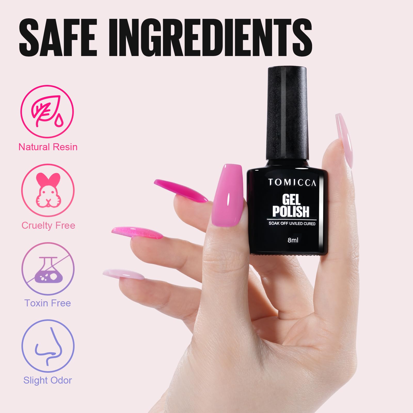 TOMICCA UV Gel Nagellack Set, 6 Farben Rosa Nagellack, Soak-Off UV/LED Gel Geschenk für Nagelstudio DIY Home, 8ML