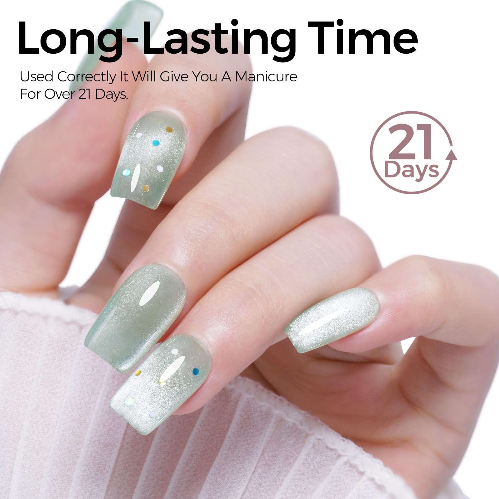 Die vier Cat Eye Gel Nagellacke enthalten feine Glitzerpigmente, die je nach Lichteinfall und Auftrag diamantartigen Glanz erzeugen. Durch wiederholte Anwendung wird die Farbintensitaet und der Cat-Eye-Effekt noch deutlicher sichtbar. Die Farben koennen vielseitig eingesetzt werden und eignen sich fuer dezente bis auffaellige Nail Art Designs.