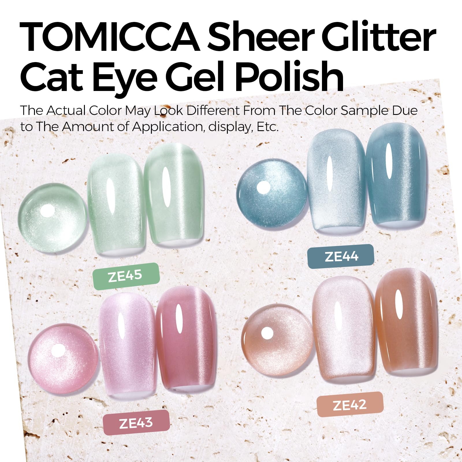TOMICCA Cat Eye UV Nagellack Set mit 4 Farben, Glitzer Rosa Gel Nagellack 8 ml