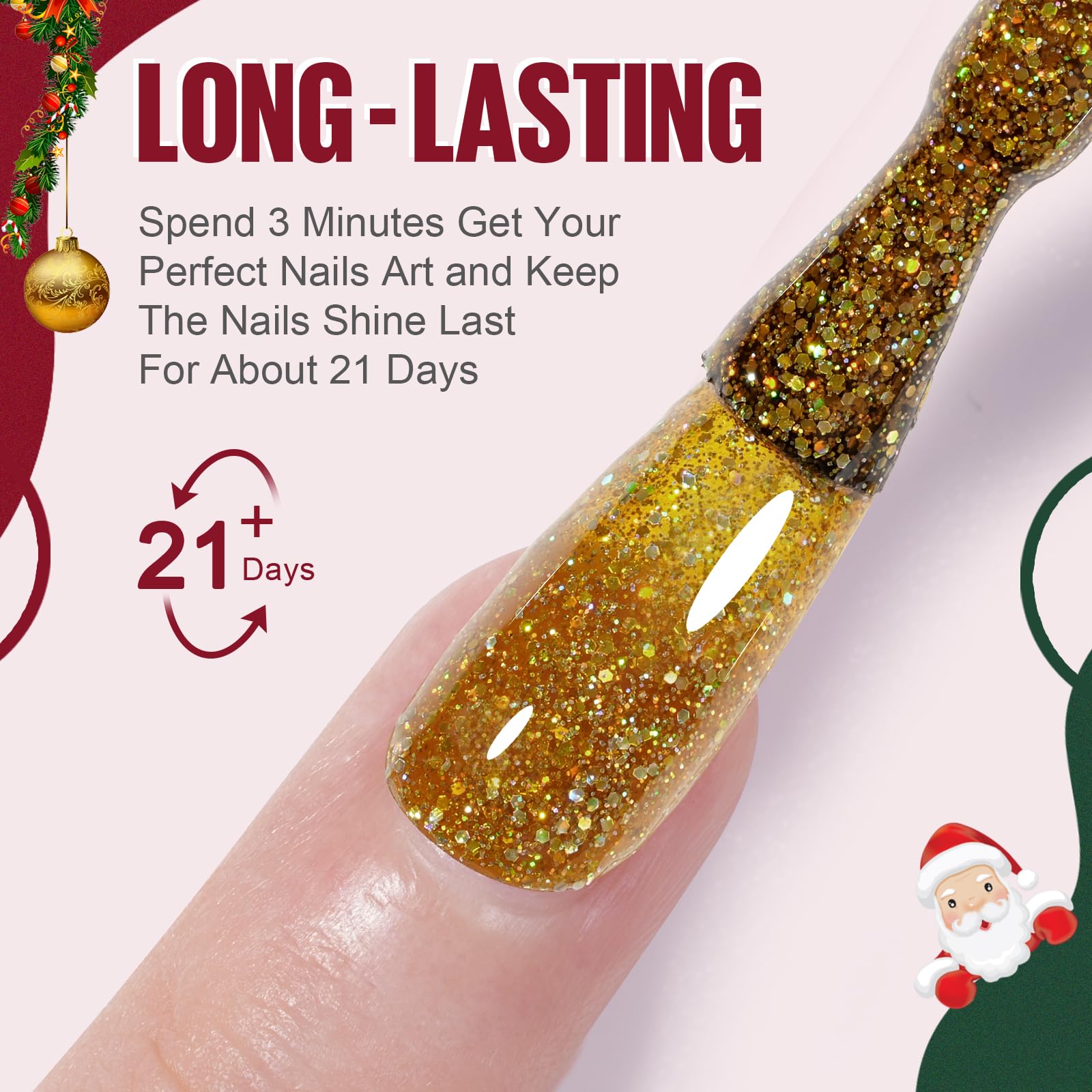 TOMICCA UV Nagellack Weihnachten Set, 4 Farben Rot, Grün, Weisser Glitzer Gel Nagellack 8 ml