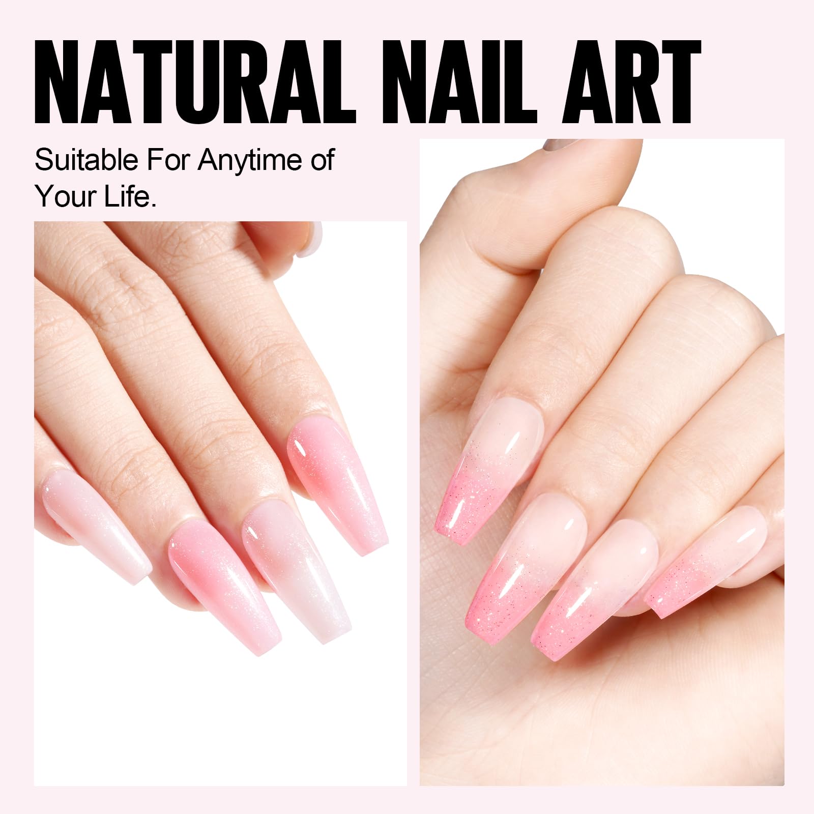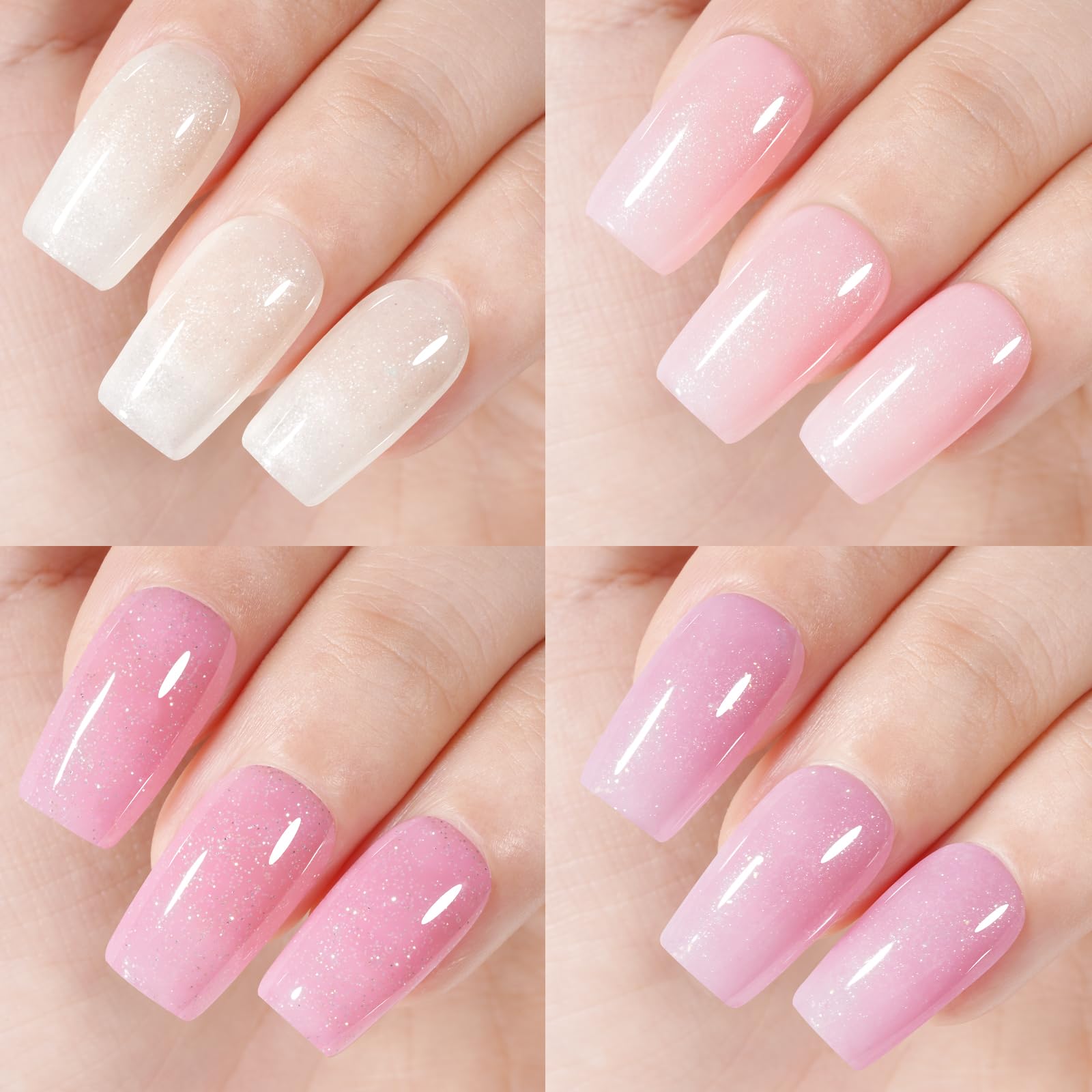 Das TOMICCA semi-permanente UV Gel Nagellack Set mit vier Farben in Transparent, Rosa und Weiss mit feinen Pailletten bietet vielseitige Moeglichkeiten fuer elegante und moderne Nail Art Designs. Das Set eignet sich fuer Anfaenger, DIY-Anwendungen zu Hause sowie fuer den professionellen Einsatz im Nagelstudio.