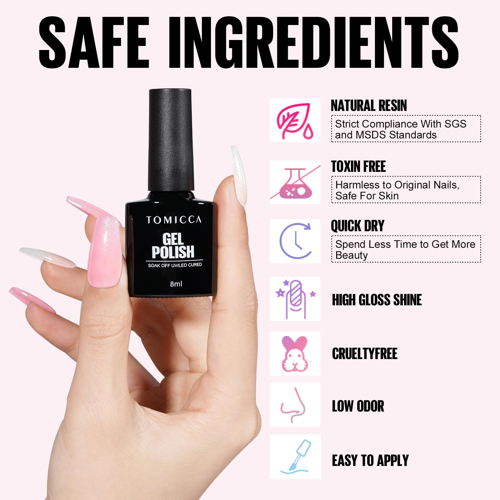 • Sichere Formel & bewaehrte Marke Der UV Gel Nagellack ist geruchsarm, nicht giftig und schonend zu Haut und Naegeln. TOMICCA steht fuer zuverlaessige Qualitaet und kundenorientierten Service fuer ein sicheres und angenehmes Manikuere-Erlebnis.