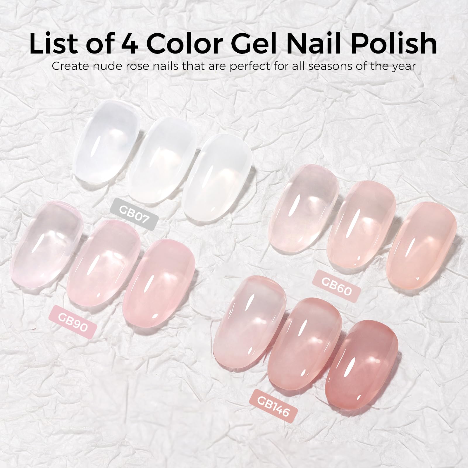 Die vier Farbtöne in diesem Set bieten eine harmonische Mischung aus sanften Rosatönen und transparentem Weiss, die perfekt zusammenarbeiten, um stilvolle und elegante Nageldesigns zu schaffen. Der UV Gel Nagellack bietet einen glänzenden, hochreflektierenden Finish und eignet sich für eine Vielzahl von Anlässen.