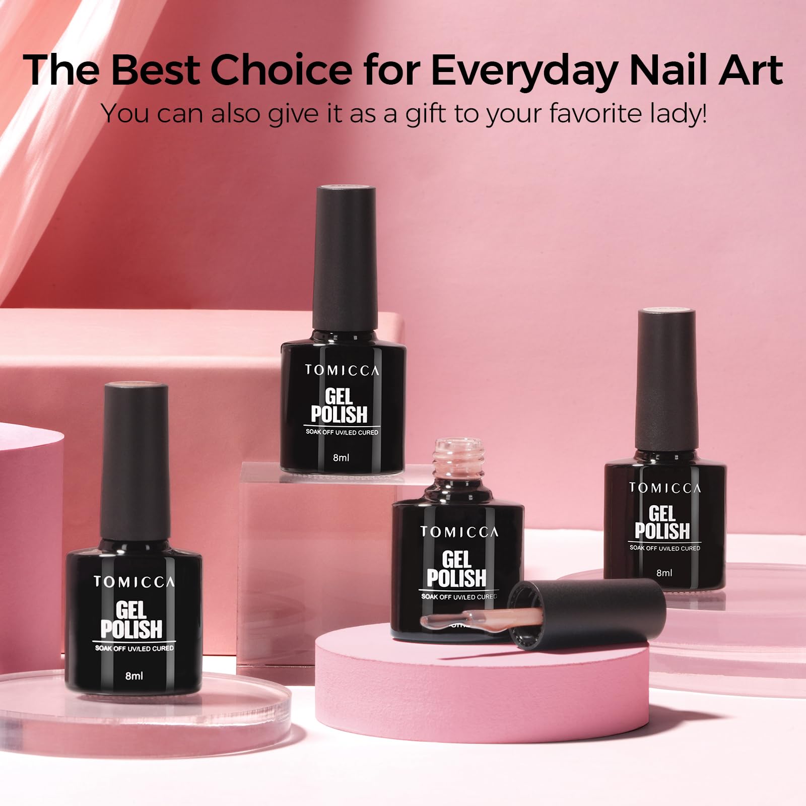 TOMICCA UV Nagellack Set, 4 Farben Milchig Weiß, Rosa Gel Nagellack Für UV Lampe Soak-Off UV/LED für Nagelstudio & DIY Home, 8ML