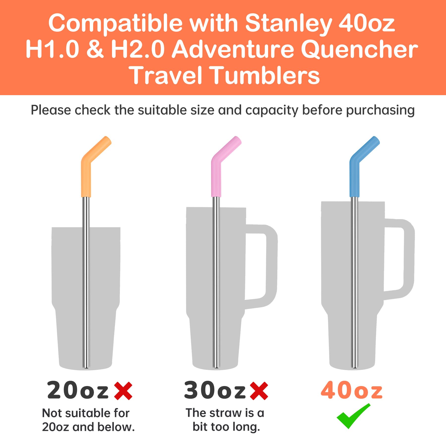 • Perfekte Passform: Unser Stolz, das Edelstahl-Trinkhalm-Set, bietet Ihnen eine perfekte Passform. Speziell für 0,9 cm breite Strohhalme entwickelt, passt dieses Set nicht nur perfekt für den Stanley Adventure Quencher 1,2 l Becher, sondern sorgt auch für eine perfekte Passform für andere Tassen. Messen Sie vor dem Kauf unbedingt den Durchmesser des Strohhalms, um eine perfekte Übereinstimmung zu gewährleisten. Die Gesamtlänge des Strohhalms mit Silikonspitze beträgt 33 cm und bietet Ihnen einen längeren Genuss Ihrer Getränke.