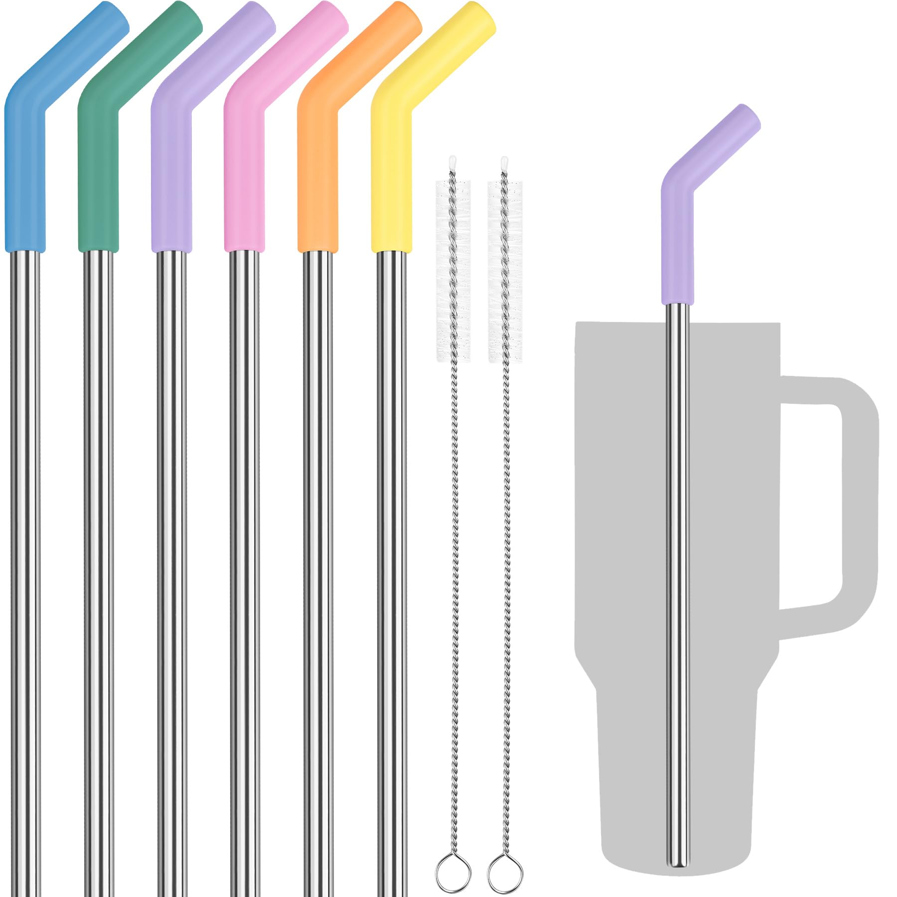 Tomorotec Edelstahl-Trinkhalme mit Silikonspitze für Stanley-Becher mit 2 Reinigungsbürsten, 33 cm lang, BPA-frei, gesund und sicher für den Aussen- und Heimgebrauch, verbessert den Trinkgenuss (Macaron-Farben)