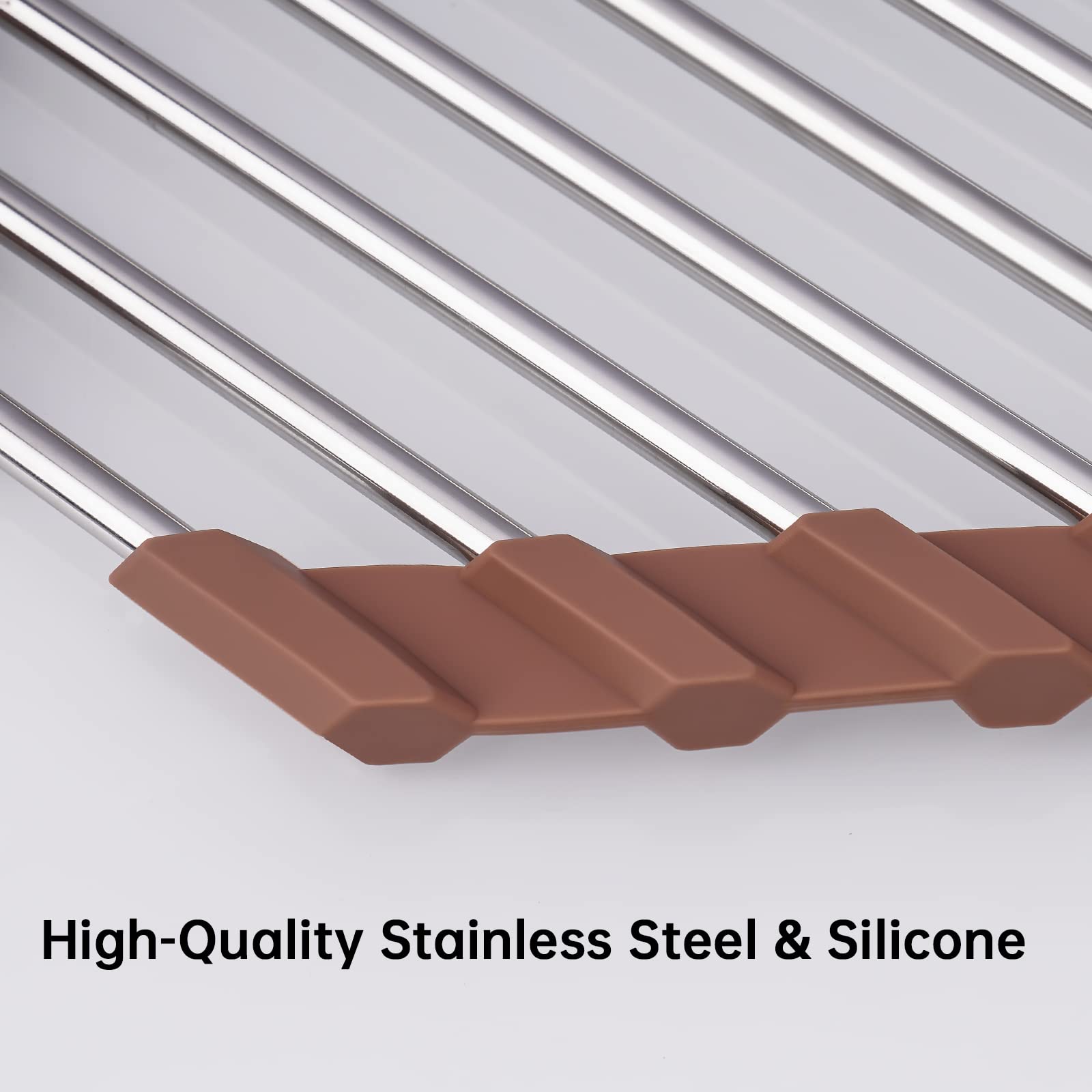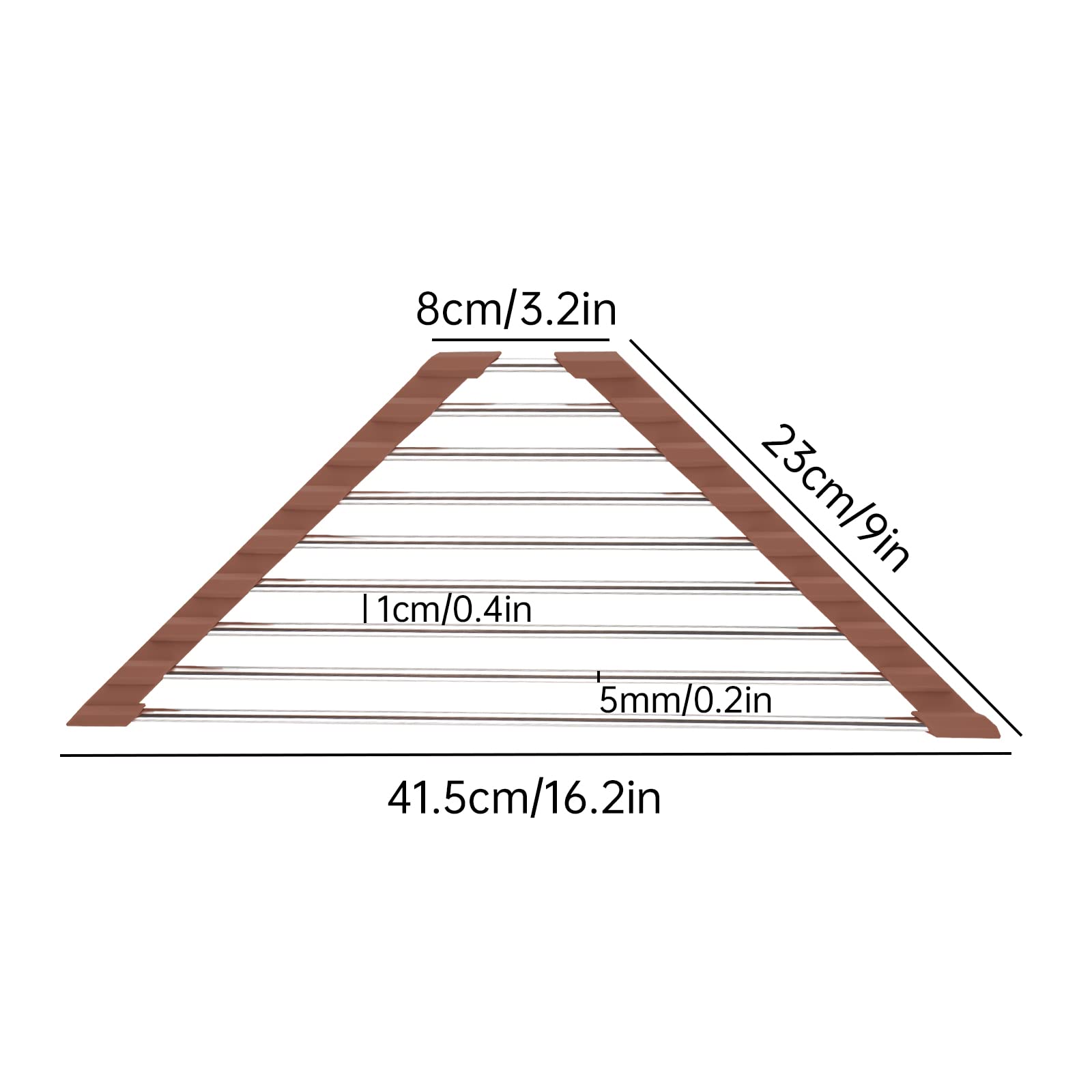 Tomorotec Dreieckiges aufrollbares Abtropfgestell für Spüle, Ecke, klein, faltbar, Edelstahl, über der Spüle, Mehrzweck-Küchenabtropfgestell, Caddy, Untersetzer, rostfrei, platzsparendes Regal (Schokoladenbraun)