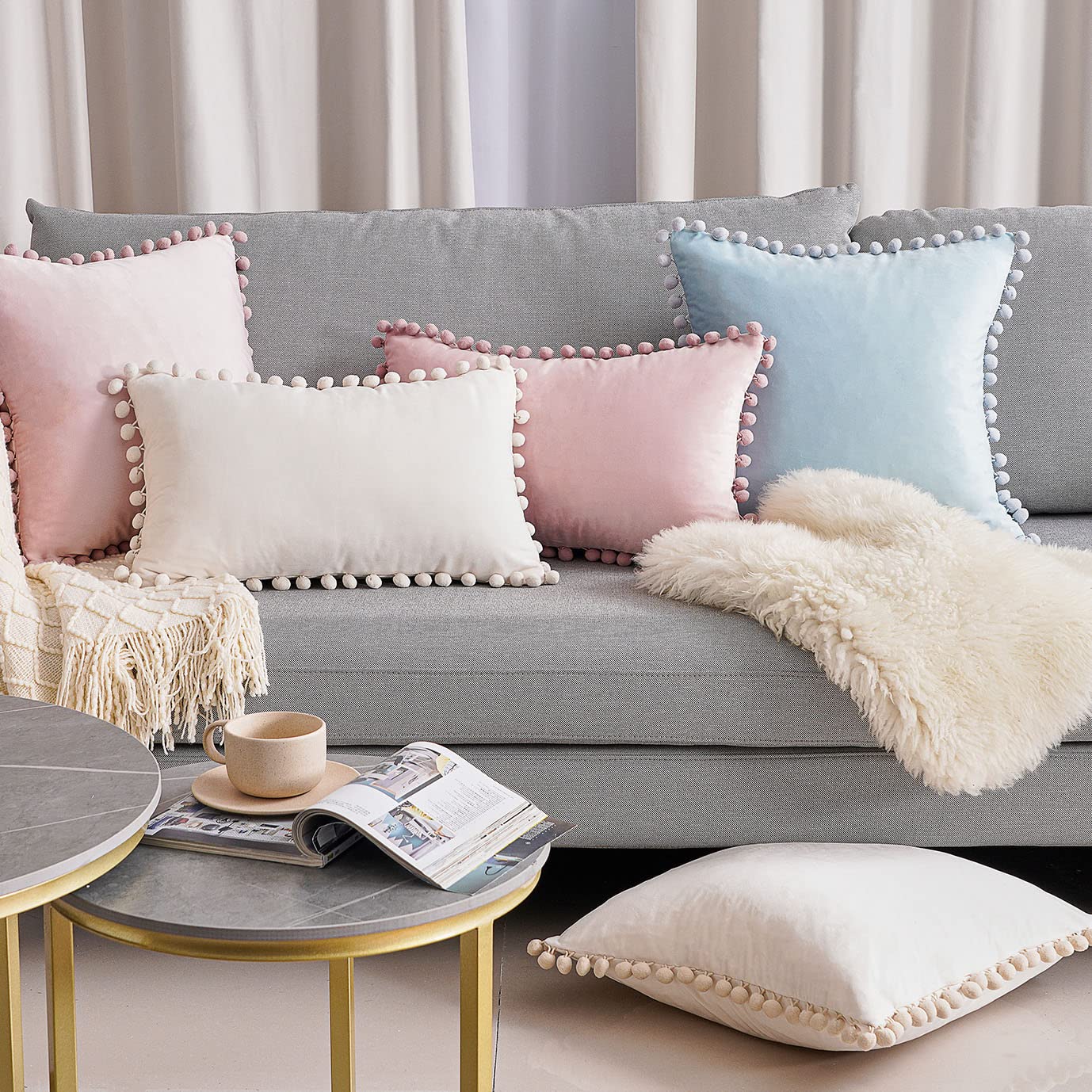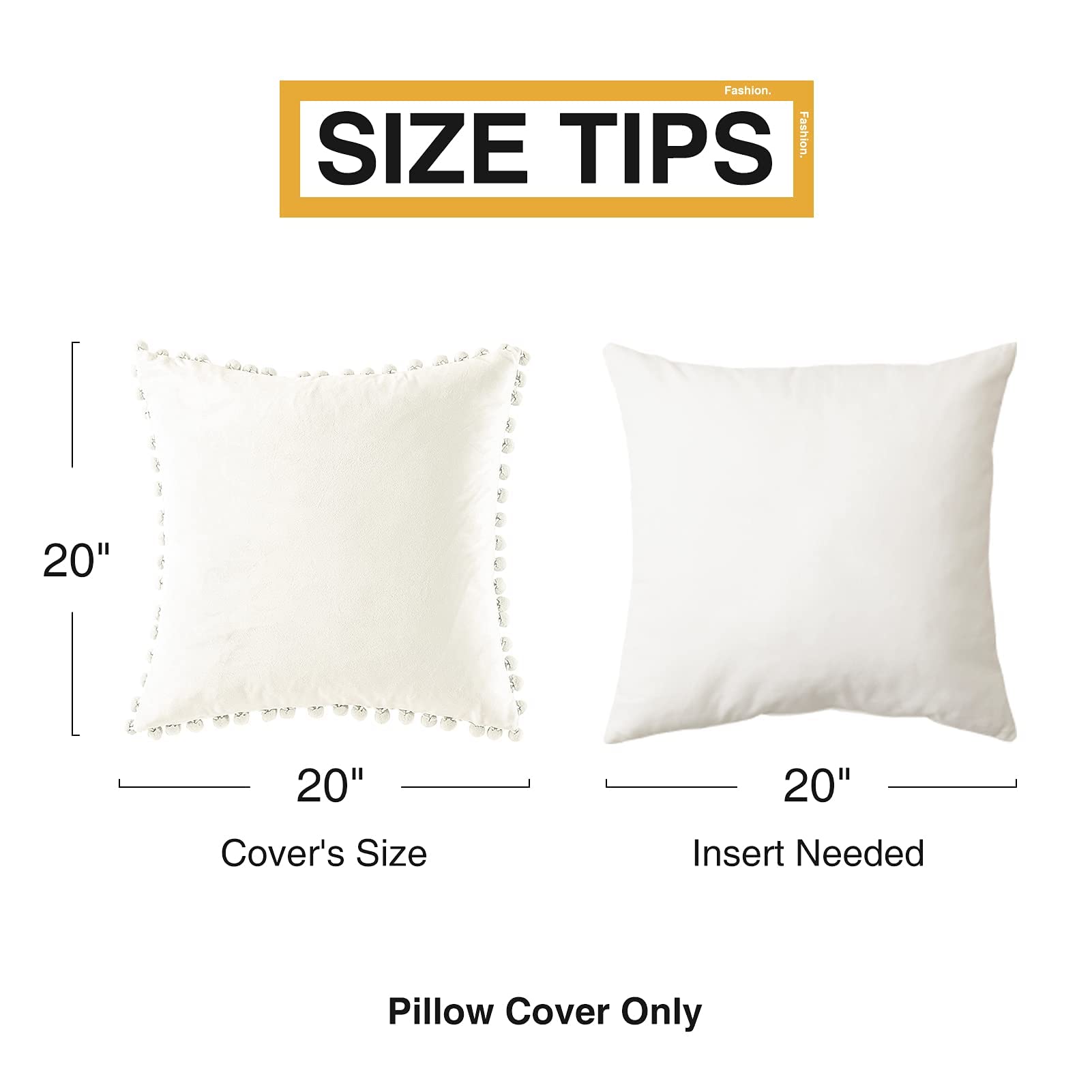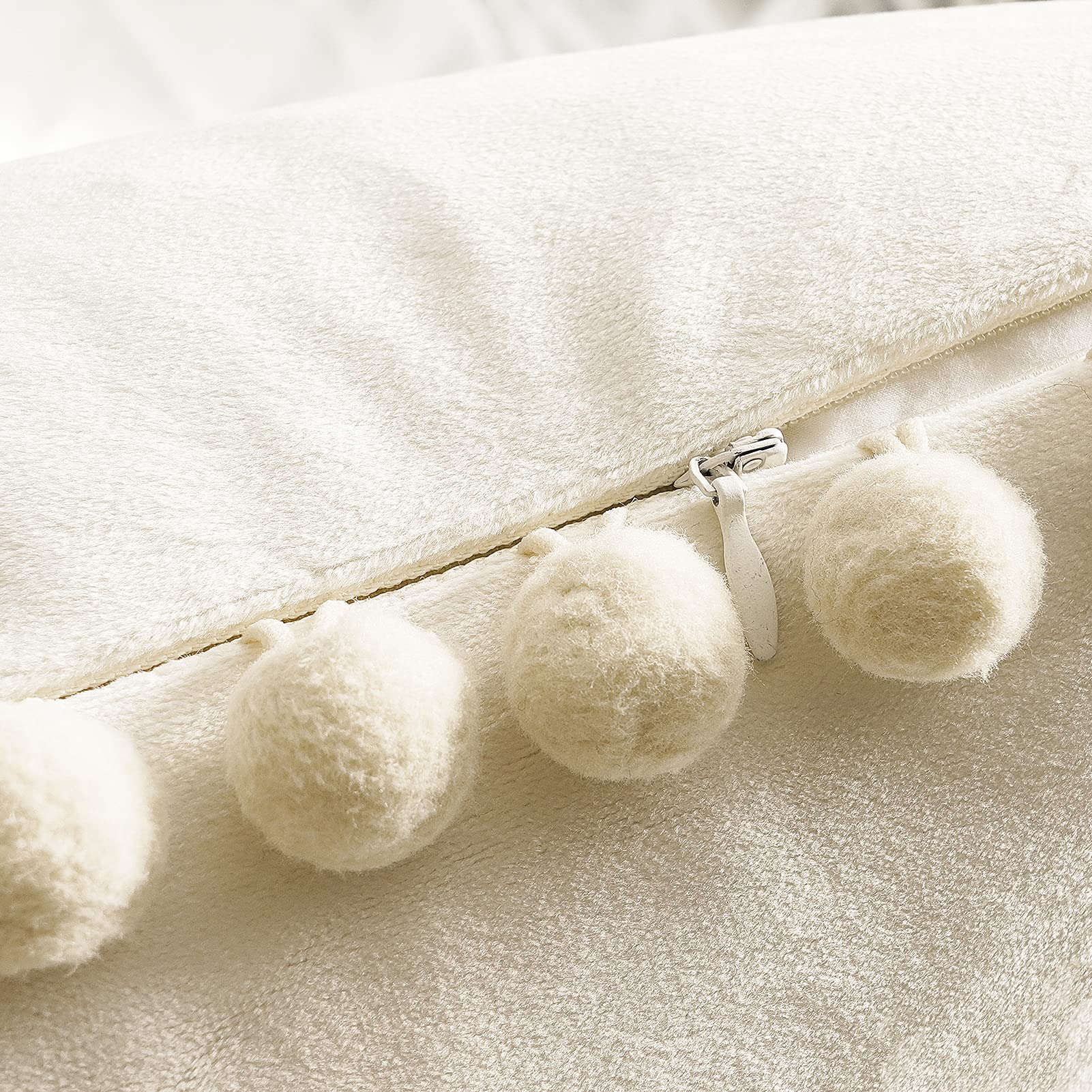 Topfinel Dekorative Kissenbezug 50x50 mit Bommeln Weiche Partikel Samt Solide Kissenbezüge Kissenhülle für Couch Sofa Schlafzimmer Auto Sofakissen Couchkissen Dekokissen Wohnzimmer, 2er Pack Creme