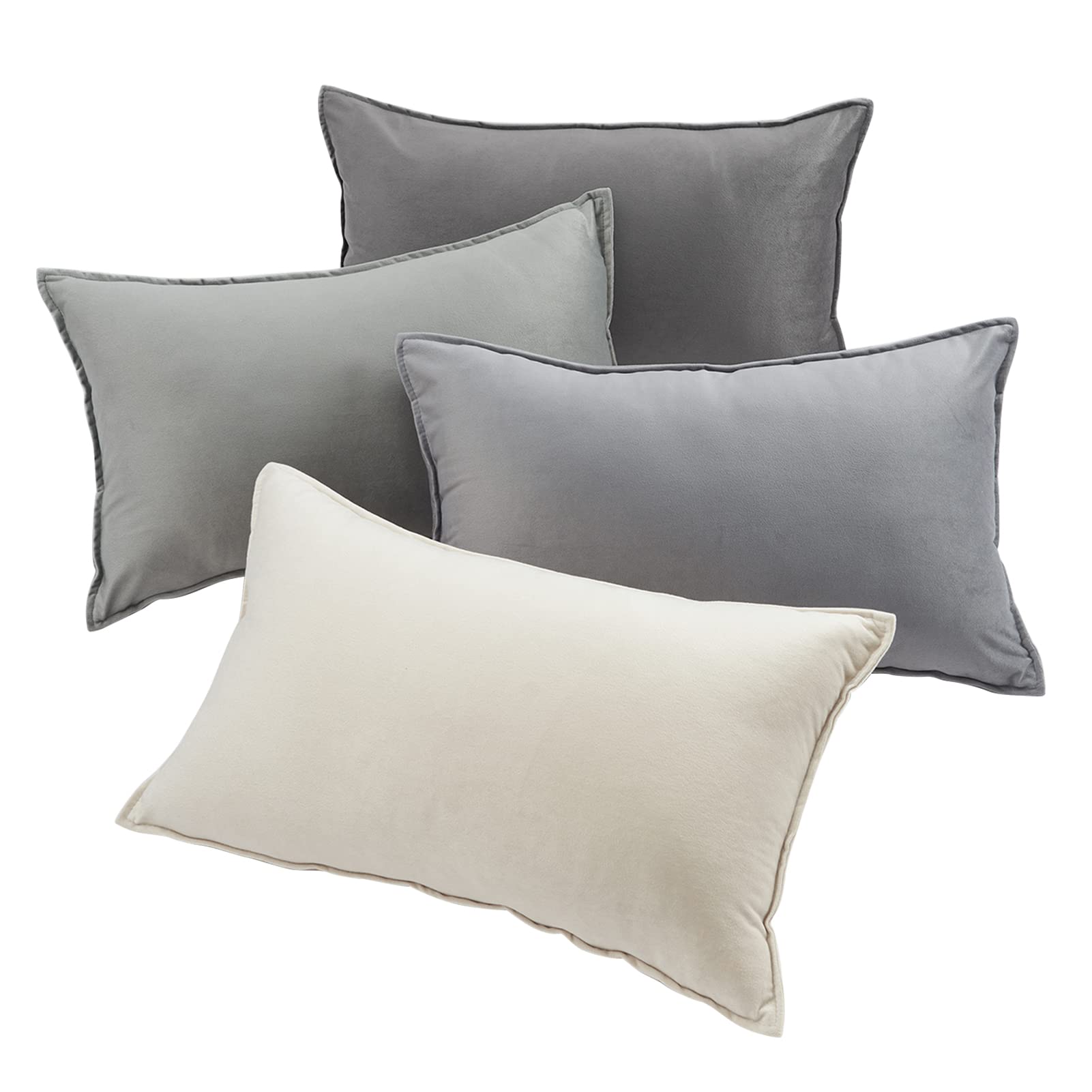 Topfinel Kissenbezug 30x50 grau 4er Set Samt Farbverlauf Kissenbezüge Kissenhülle sofakissen dekokissen Zierkissen Bezug deko für Sofa Schlafzimmer Wohnzimmer Balkon flauschig