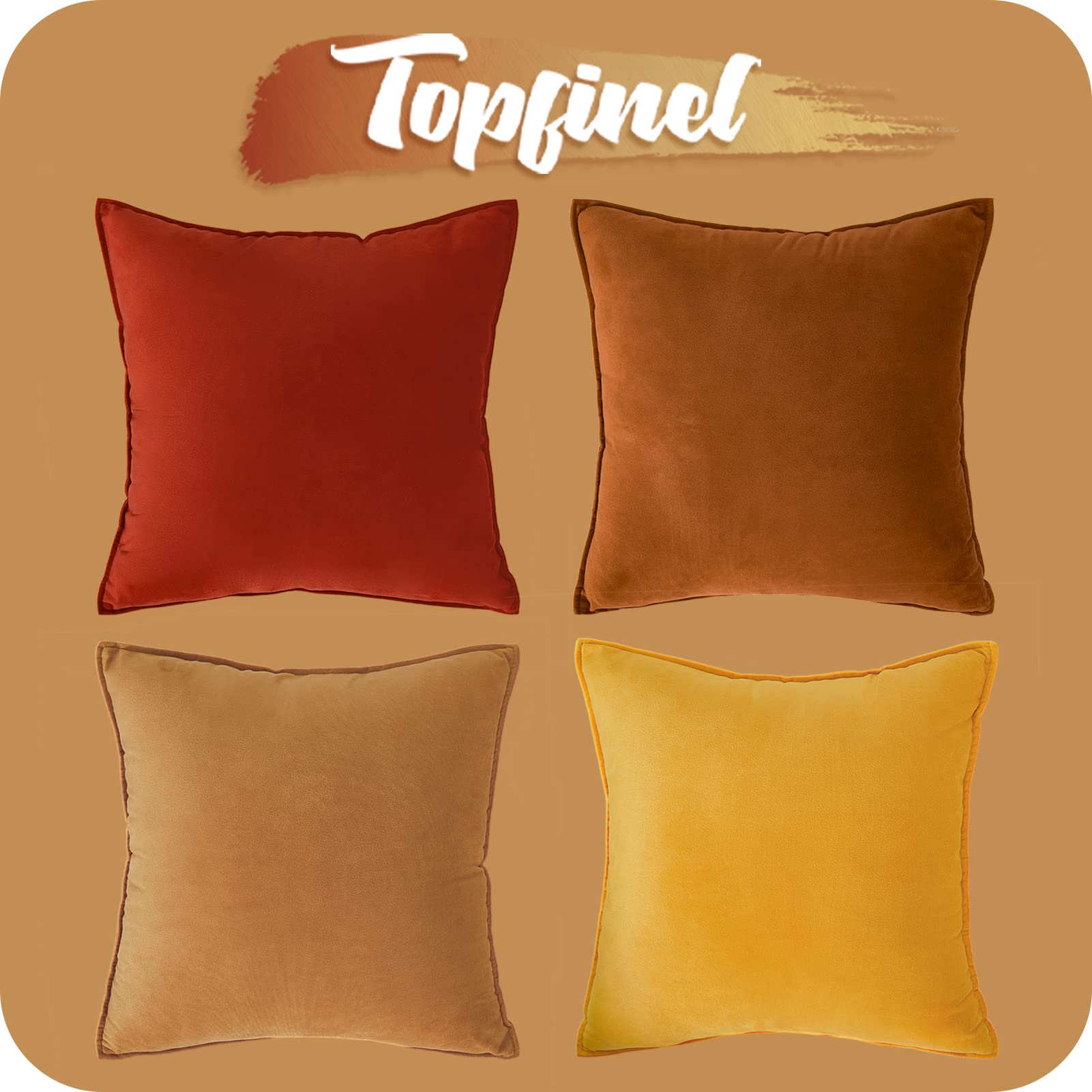 Topfinel Kissenbezug 50x50 cm Gelb Orange 4er Set Samt Kissenbezüge Kissenhülle sofakissen dekokissen Zierkissen Kuschelkissen Bezug deko für Wohnzimmer Bett Herbst Winter Farbverlauf