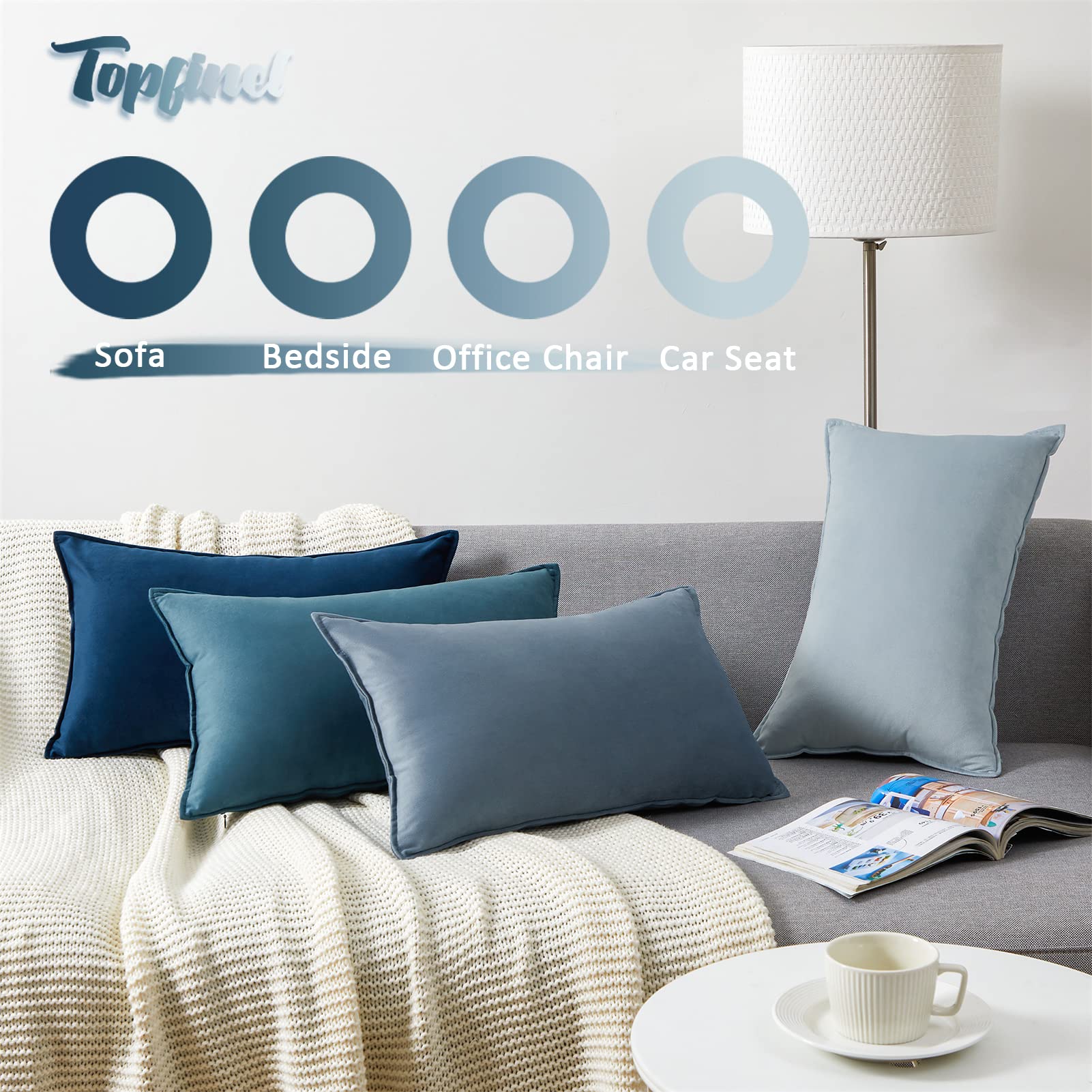 Topfinel Kissenbezug 30x50 blau 4er Set Samt Kinderzimmer deko Kissenbezüge Kissenhülle sofakissen dekokissen Zierkissen Bezug deko für Sofa Schlafzimmer Wohnzimmer Balkon flauschig