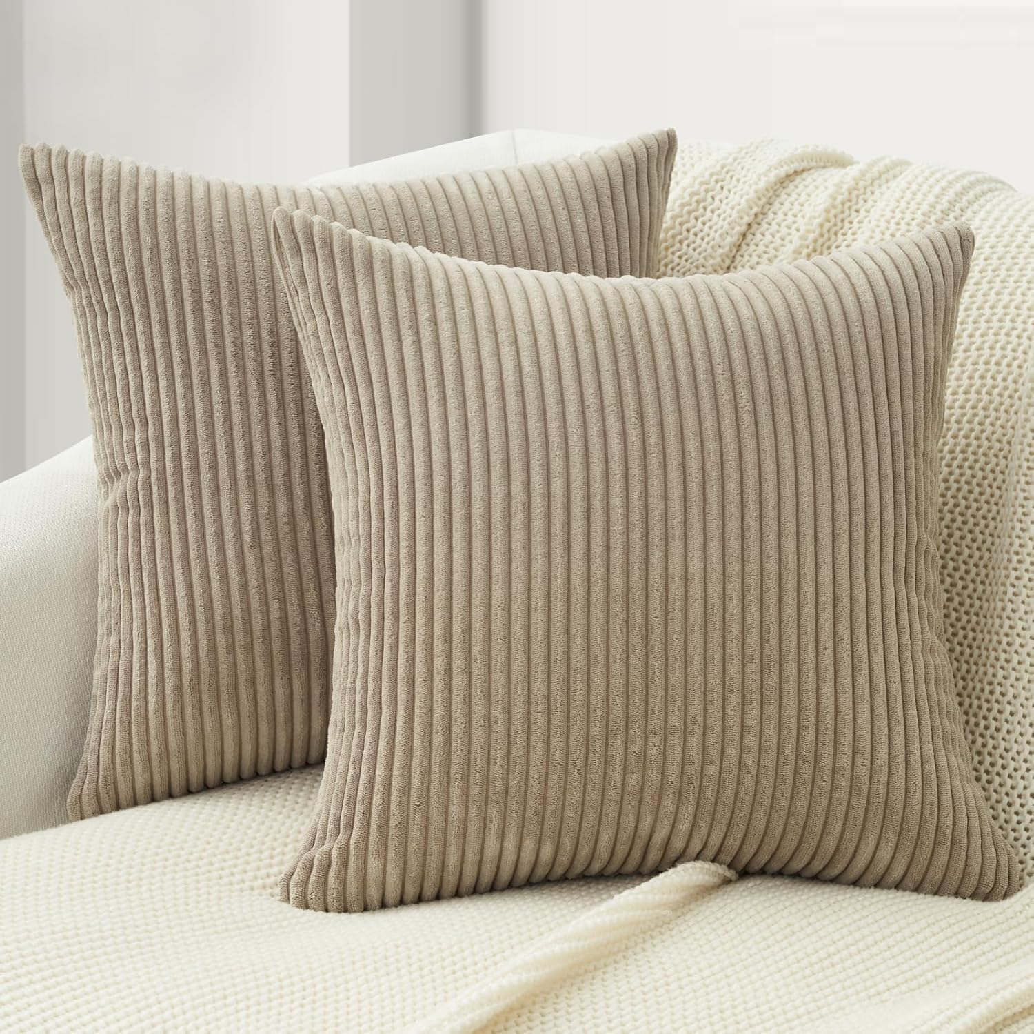 Topfinel Kissenbezug Kordsamt 2er Set Windmühle Streifen Patchwork Design Deko Wohnzimmer Bett Schlafzimmer Sofa