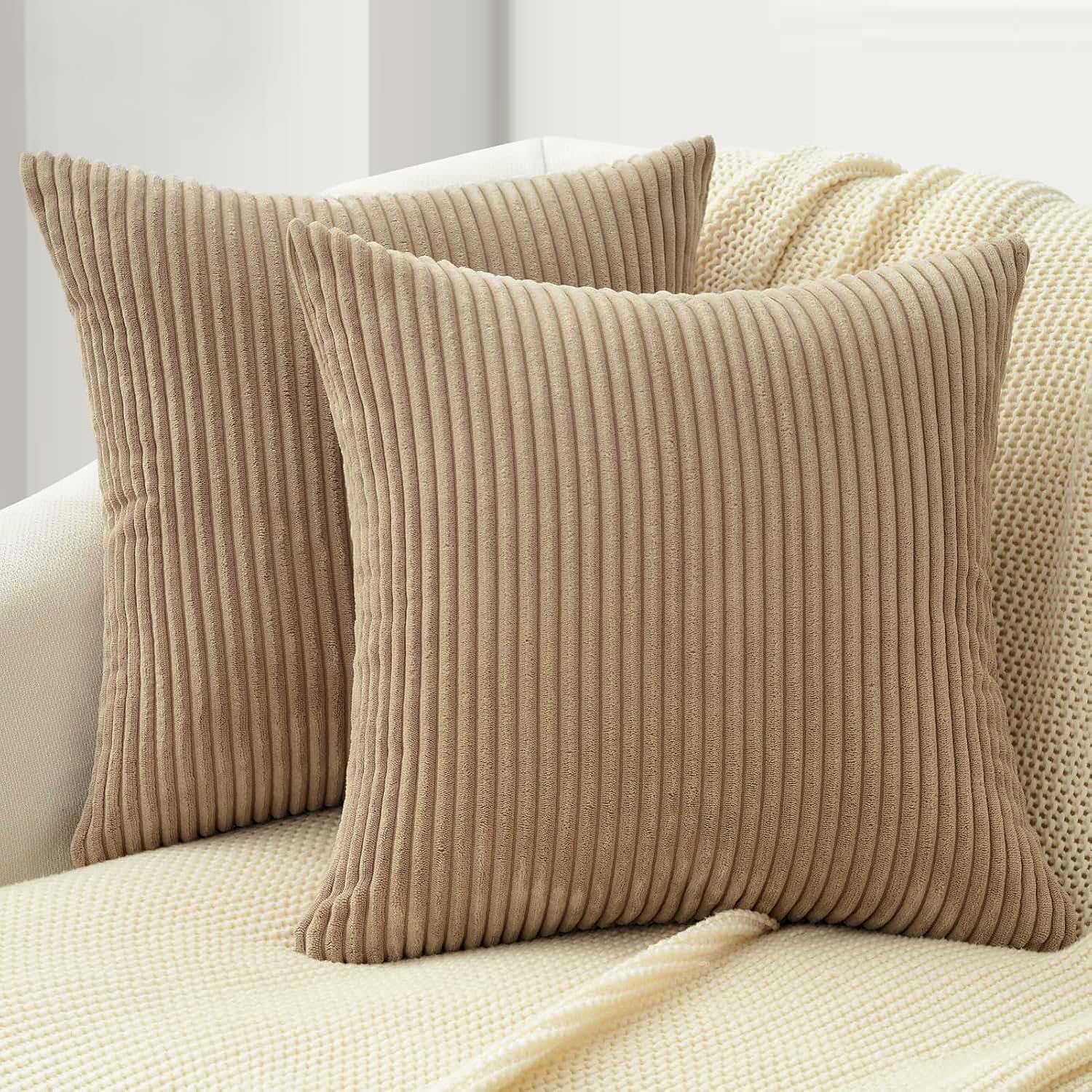 Topfinel Kissenbezug 50x50 Braun Kordsamt 2er Set Gestreiftes Muster Kissenbezüge Kissenhülle Dekokissen Sofakissen Couchkissen Dekokissen Zierkisse
