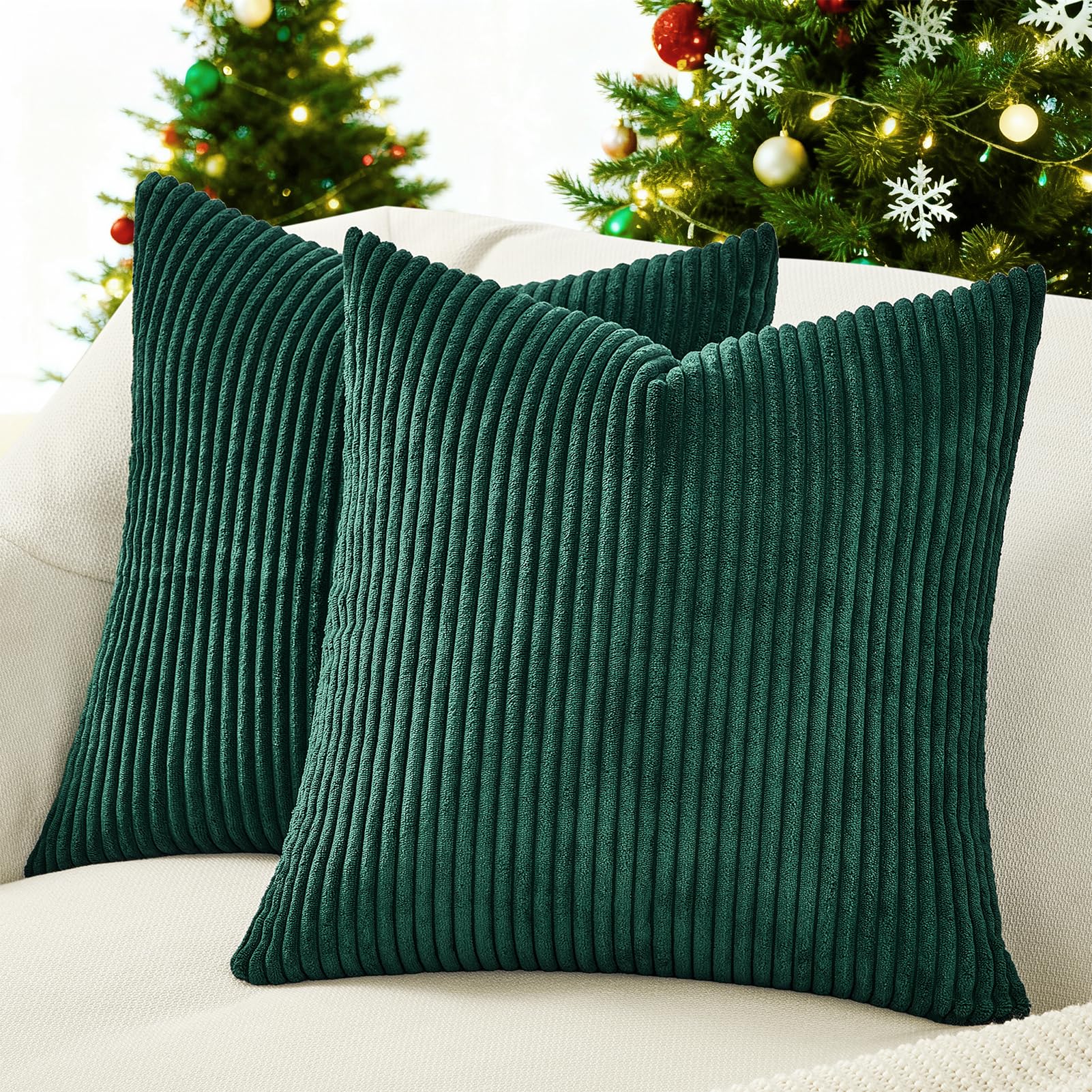 Topfinel Kissenbezug 45x45 2er Set Weihnachten dunkelgrün Kordsamt gestreiftes Muster Kissenbezüge Kissenhülle Dekokissen Sofakissen Couchkissen Dekokissen Zierkissen