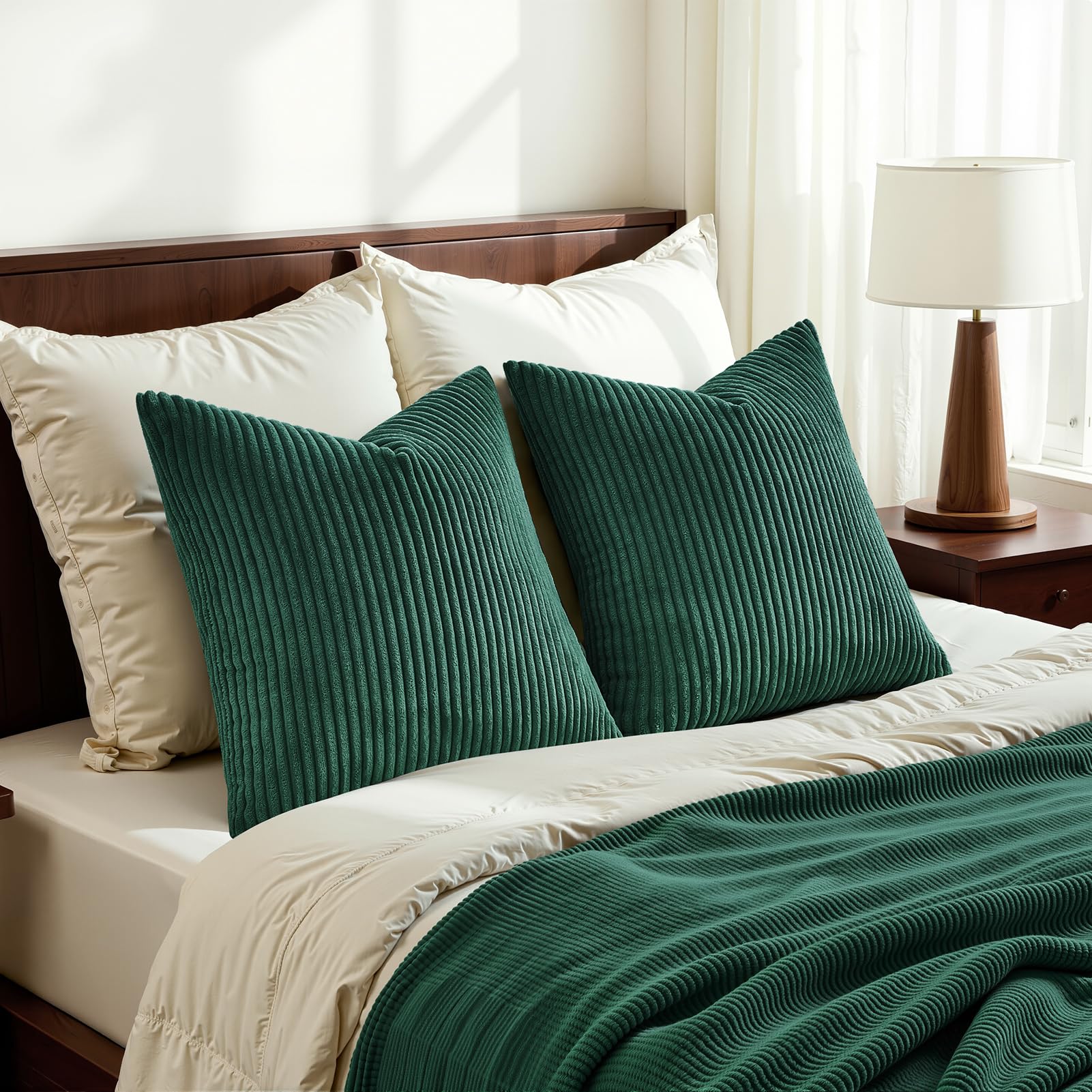 Topfinel Kissenbezug 40x40 2er Set dunkle grün gestreiftes Muster Kordsamt Kissenbezüge Kissenhülle Dekokissen Sofakissen Couchkissen Dekokissen Zierkissenbezug Deko Kissenhüllen Wohnzimmer