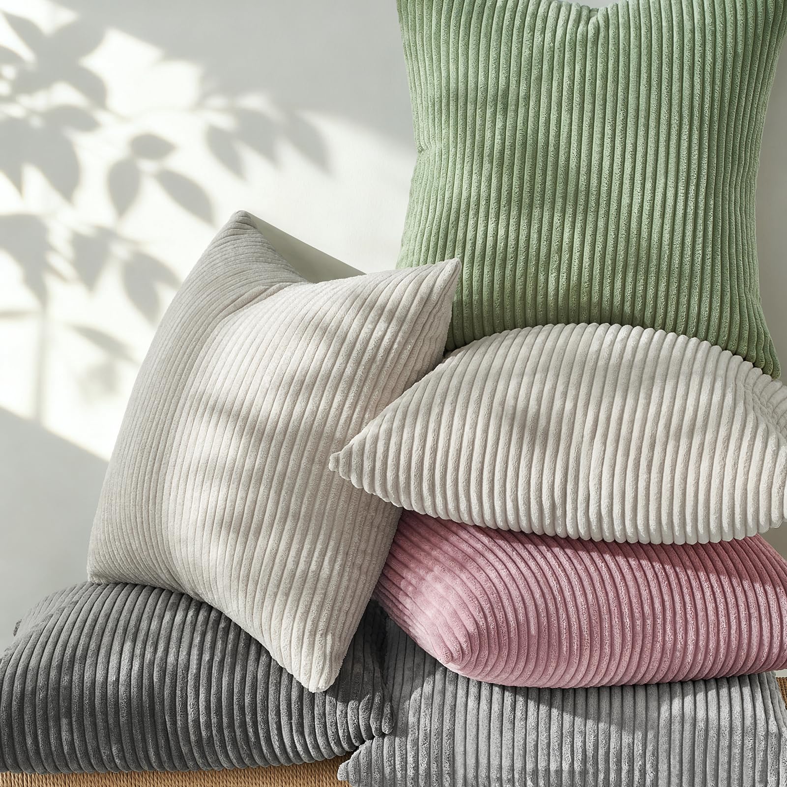 Topfinel Kissenbezug 50x50grau 2er Set Kordsamt gestreiftes Muster Kissenbezüge Kissenhülle Dekokissen Sofakissen Couchkissen Dekokissen Zierkissenbezug Deko Kissenhüllen Wohnzimmer Schlafzimmer