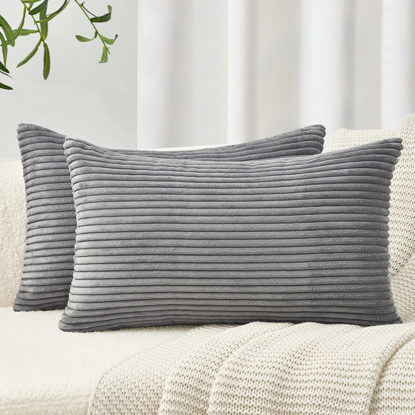 Topfinel 2er Set Kissenbezüge 40x80cm Kord Kissenhülle Dekorative Kissenbezug Sofakissen Couchkissen Dekokissen Zierkissenbezug Deko Kissenhülle Hellgrau