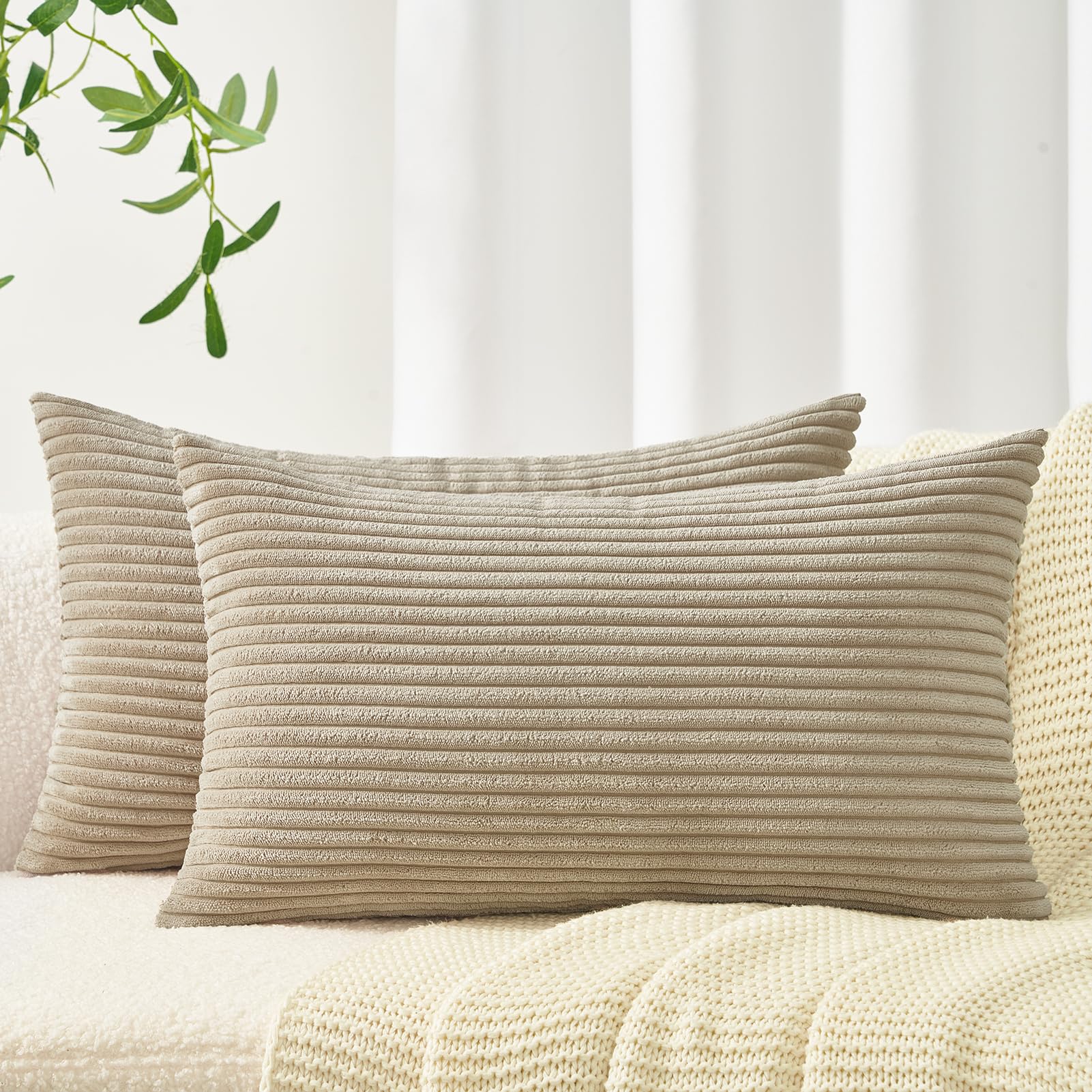 Topfinel Kissenbezug 40x80 Taupe Kordsamt 2er Set Gestreiftes Muster Kissenbezüge Kissenhülle Dekokissen Sofakissen Couchkissen Dekokissen Zierkisse