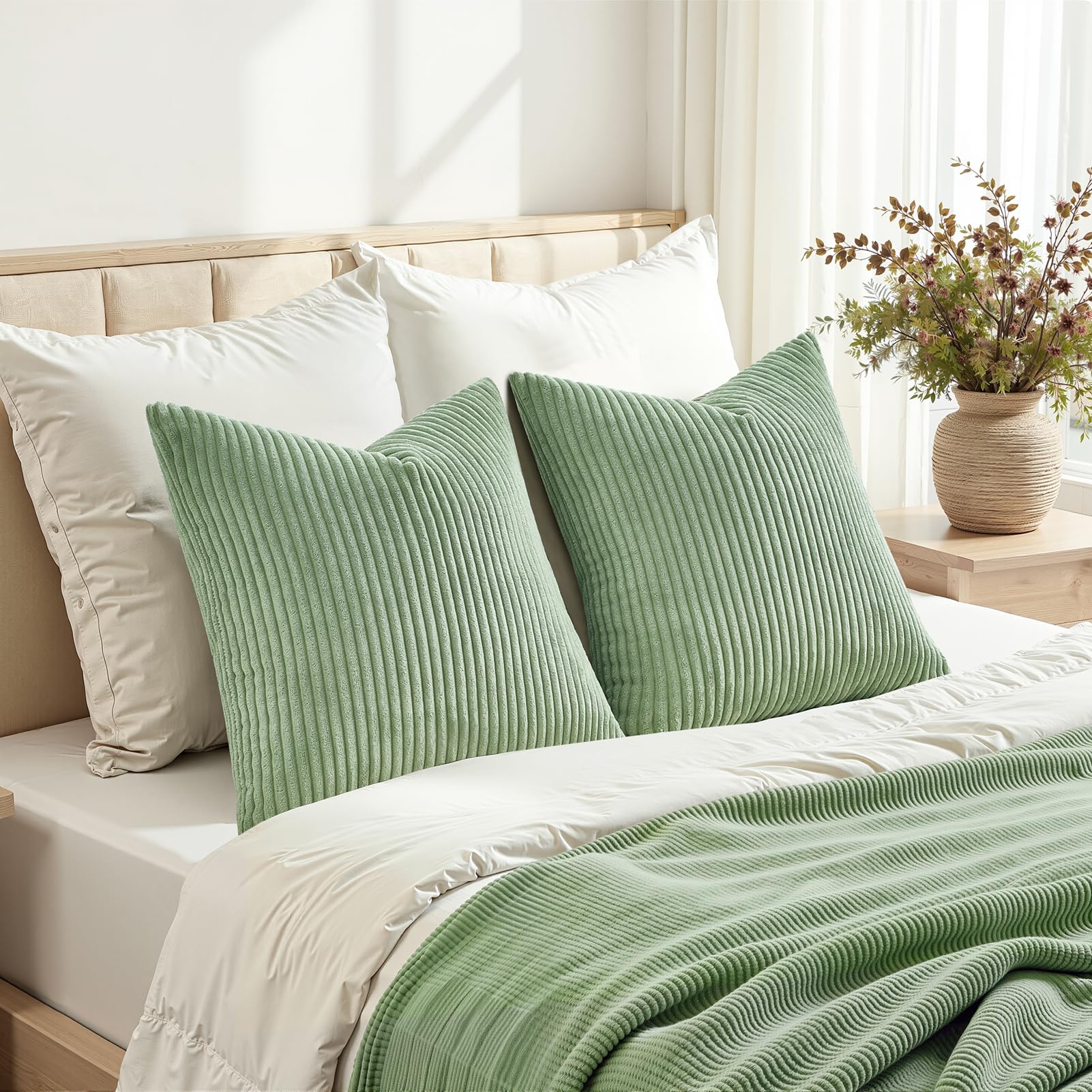 Topfinel 2er Set Kissenbezüge 40x80cm Kord Kissenhülle Dekorative Kissenbezug Sofakissen Couchkissen Dekokissen Zierkissenbezug Deko Kissenhülle Salbeigrün