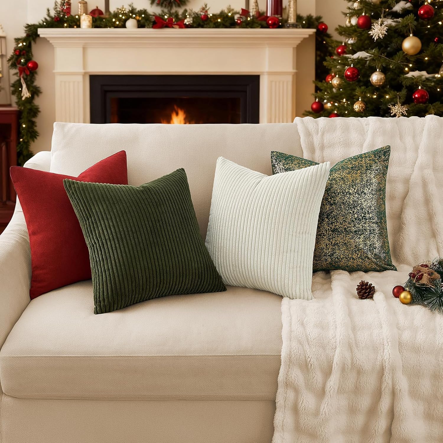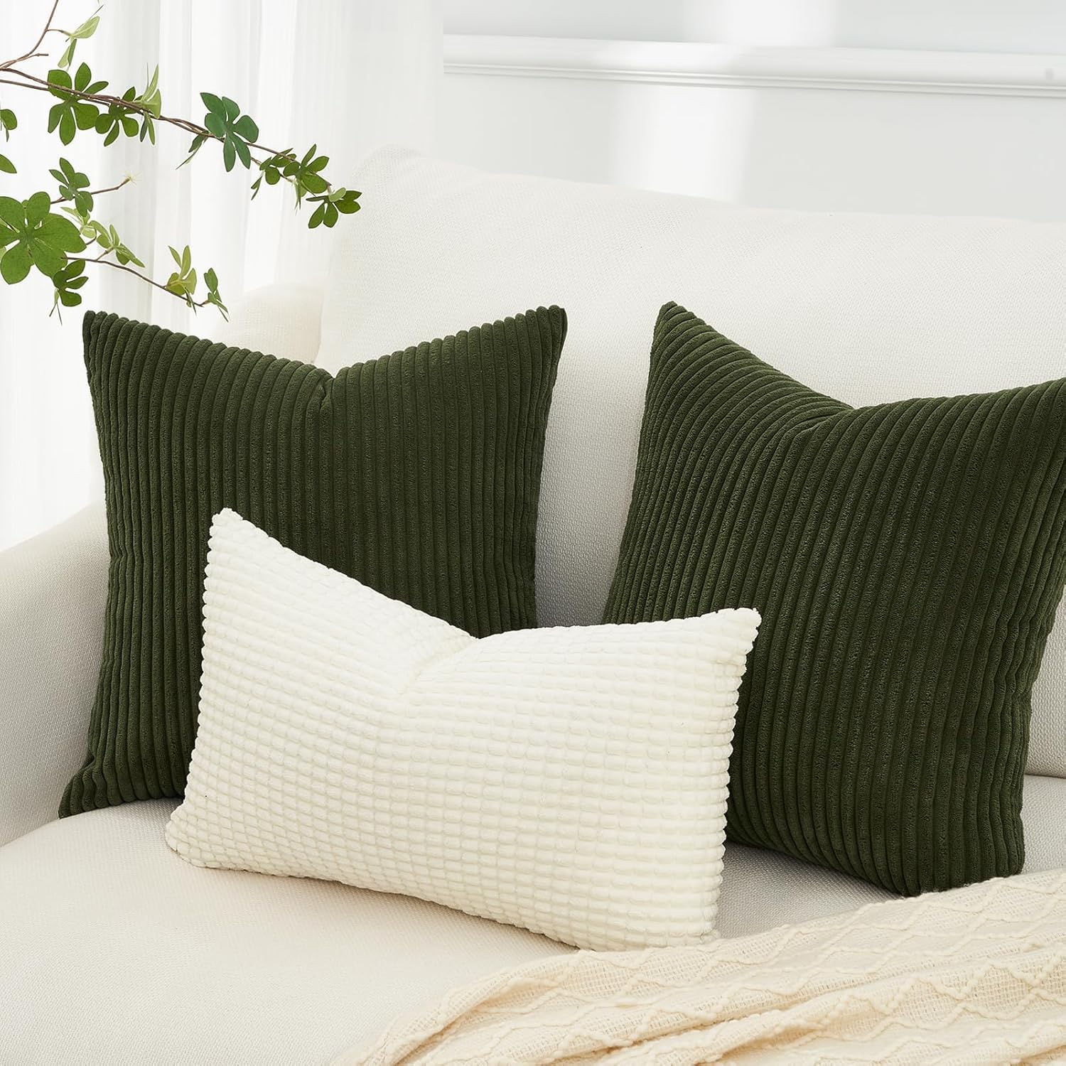 Topfinel 2er Set Kissenbezüge 40x80cm Kord Kissenhülle Dekorative Kissenbezug Sofakissen Couchkissen Dekokissen Zierkissenbezug Deko Kissenhülle Olivgrün