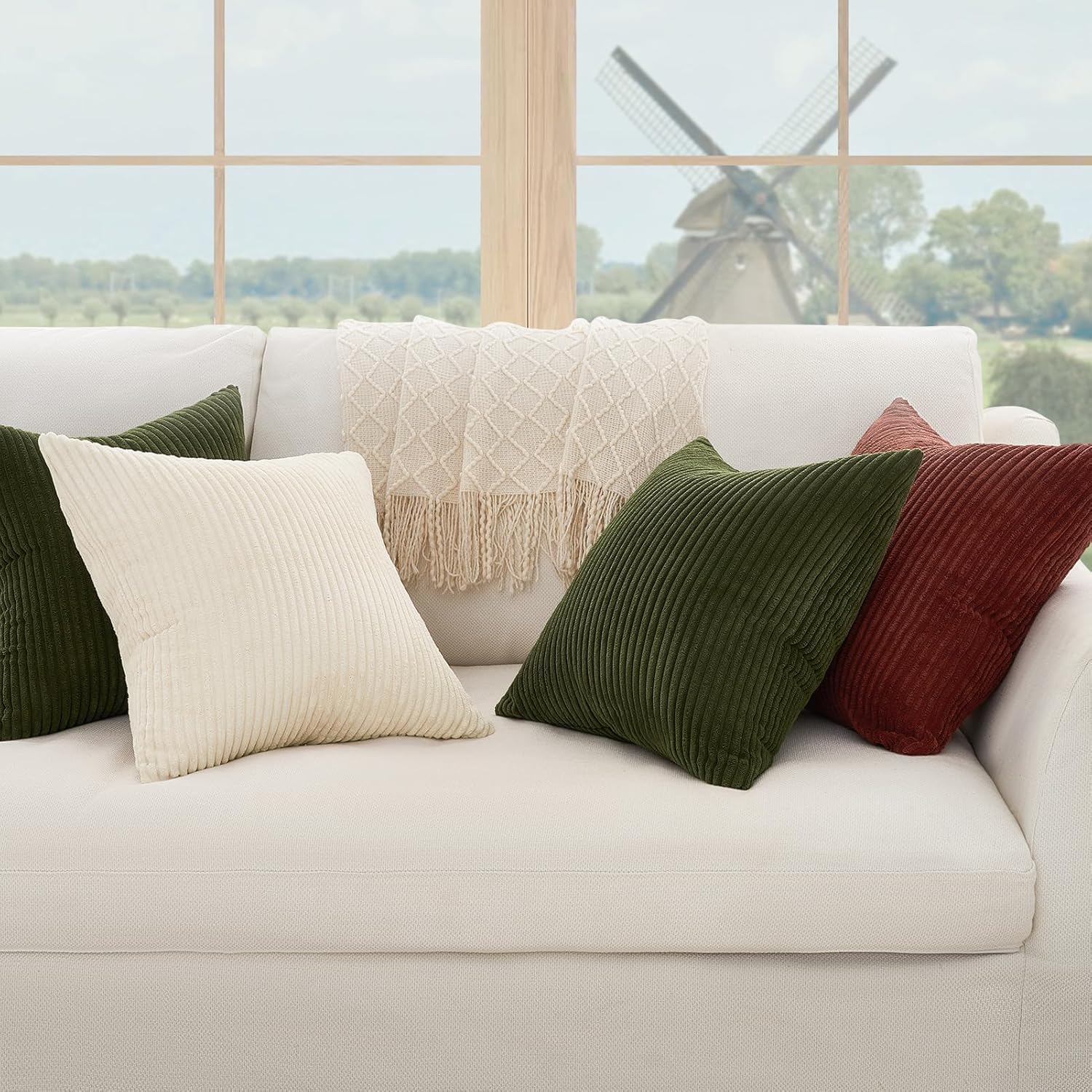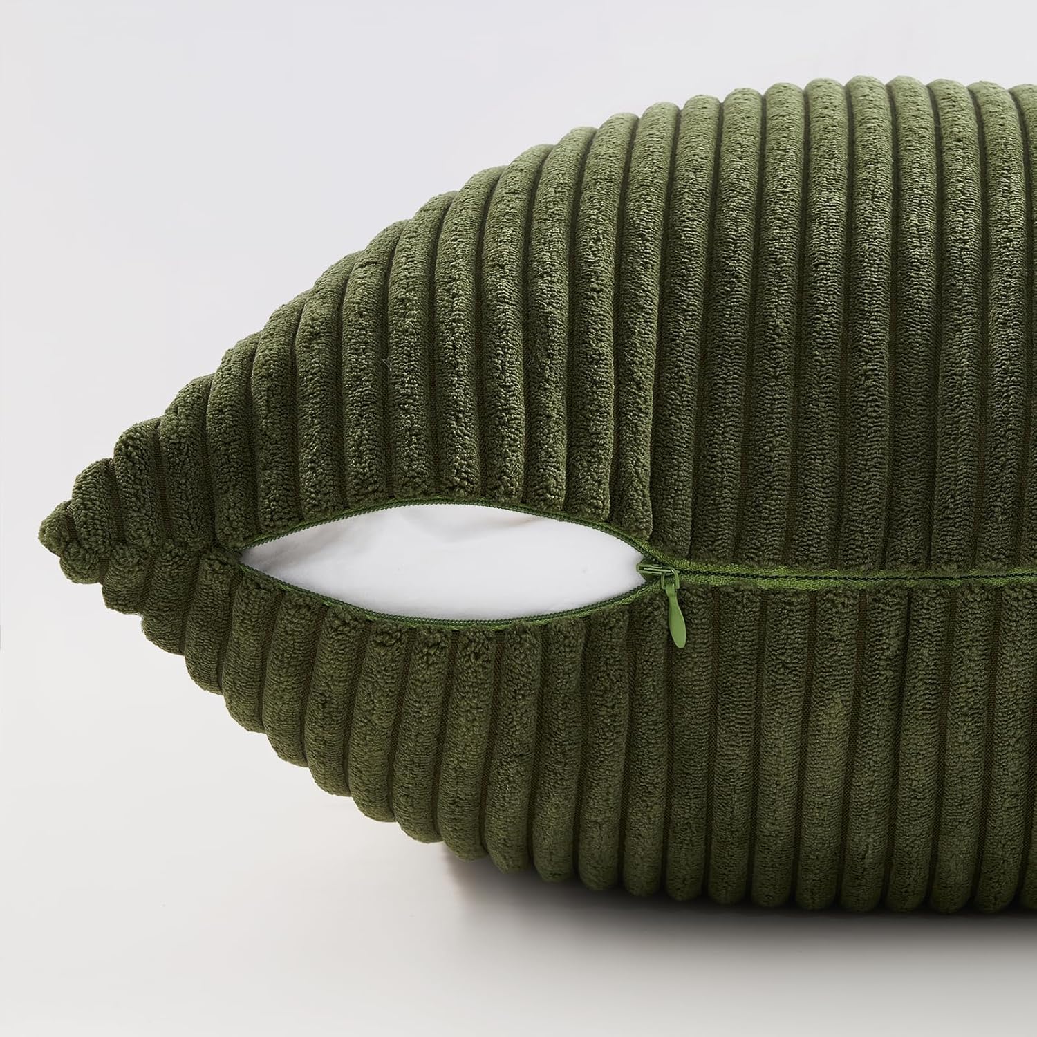 Topfinel 2er Set Kissenbezüge 80x80cm Kord Kissenhülle Dekorative Kissenbezug Sofakissen Couchkissen Dekokissen Zierkissenbezug Deko Kissenhülle Olivgrün