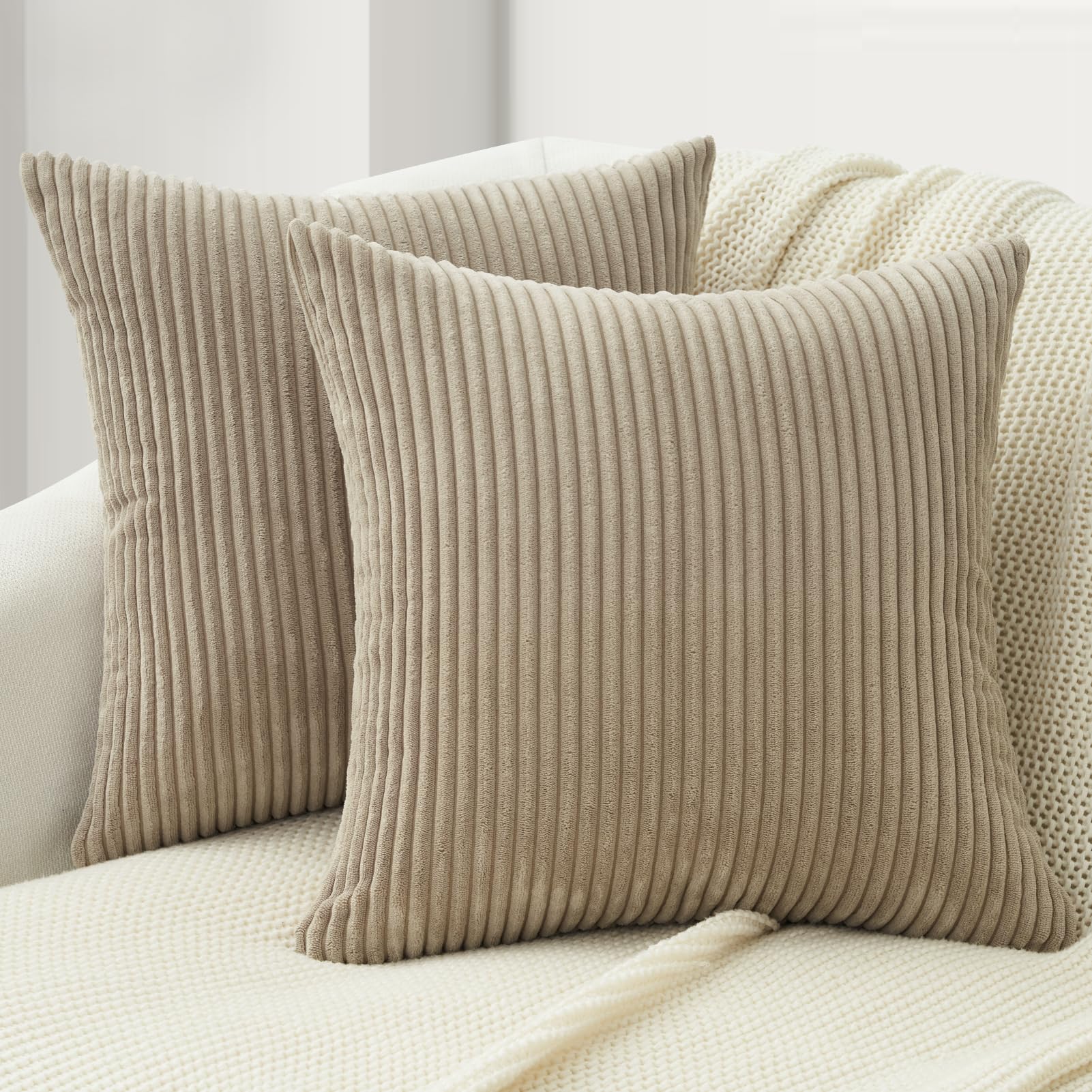 Topfinel 2er Set Taupe Kordsamt Kissenbezug 40x40CM Weich Dekorative Moderne Kissenbezüge Kissenhülle Dekokissenbezug Sofakissen Dekokissen Boho Deko für Sofa Schlafzimmer Wohnzimmer Balkon
