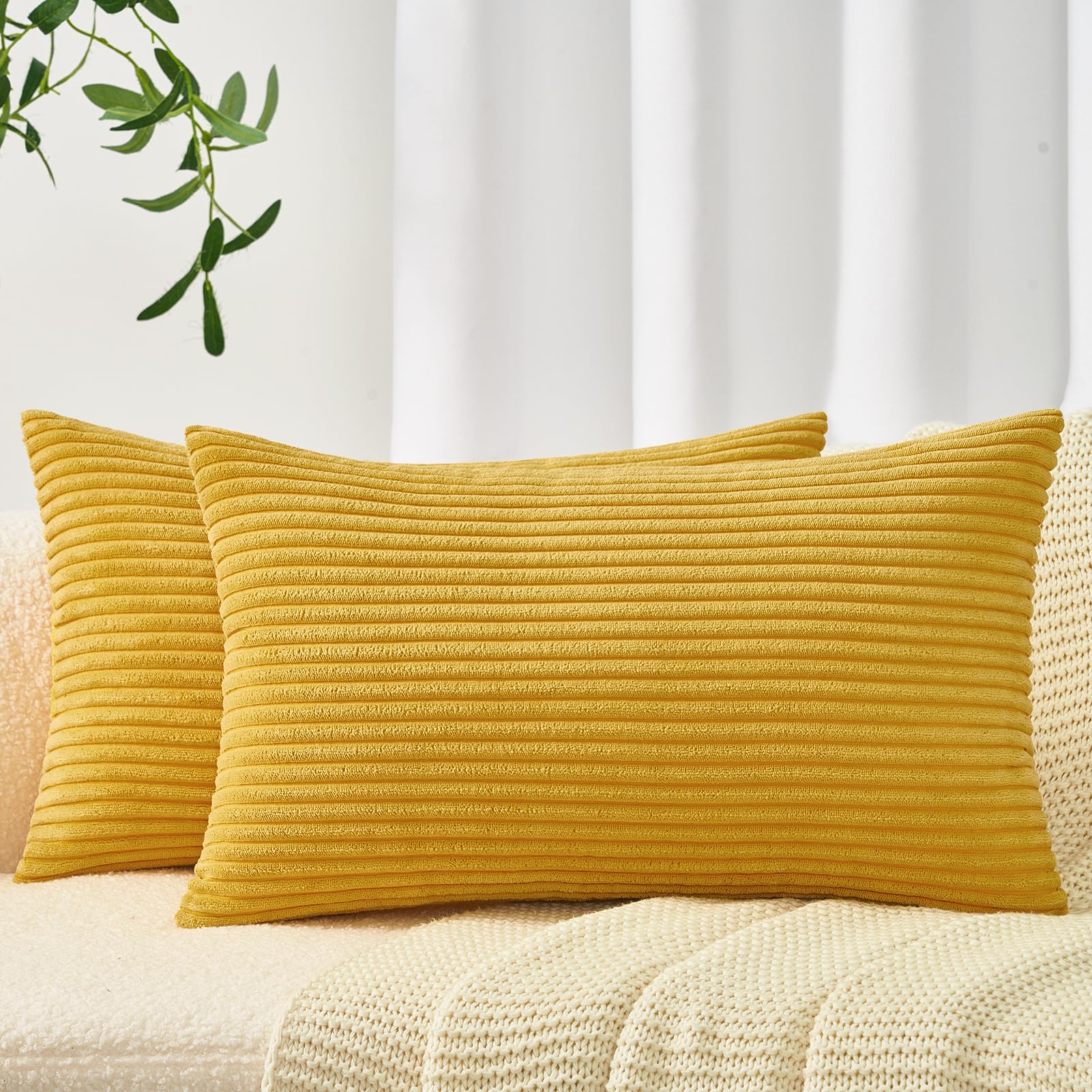 Topfinel 2er Set Kissenbezüge 50x70cm Kord Kissenhülle Dekorative Kissenbezug Sofakissen Couchkissen Dekokissen Zierkissenbezug Deko Kissenhülle Gelb