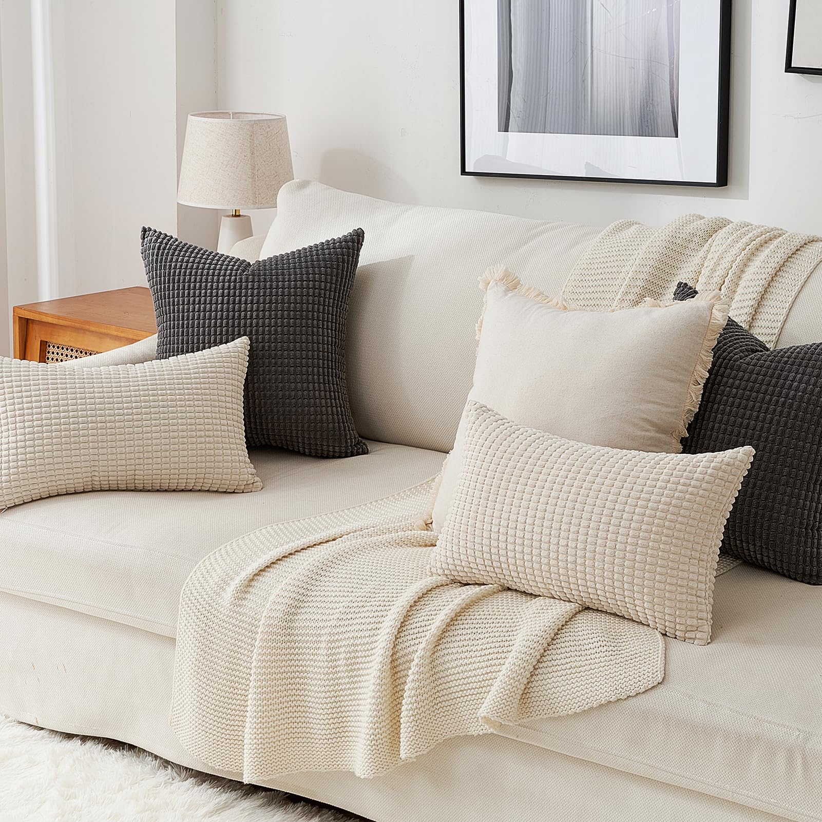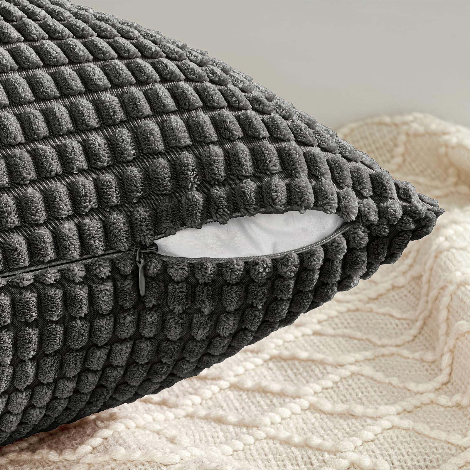 Topfinel Kissenbezug 60x60 Dunkelgrau Anthrazit 4er Set Cord körnig Kissenbezüge Kissenhülle Dekokissenbezug Sofakissen Couchkissen für Sofa Schlafzimmer Wohnzimmer Balkon Kinder flauschig