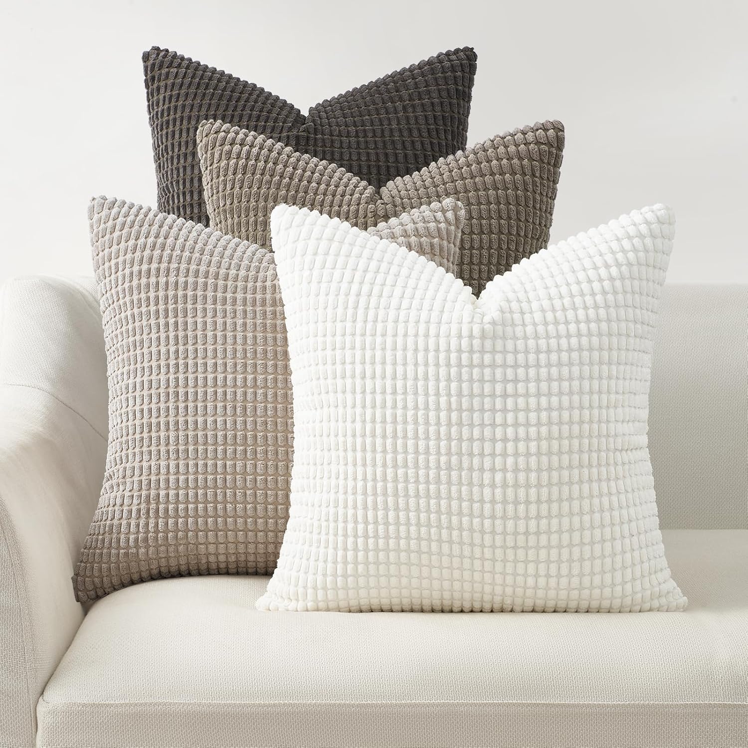 Topfinel Boho Kissenbezug 40x40 cm Natural 4er Set Kordsamt Kissenbezüge Kissenhülle sofakissen dekokissen deko für Sofa Schlafzimmer Wohnzimmer Kinder flauschig Farbverlauf