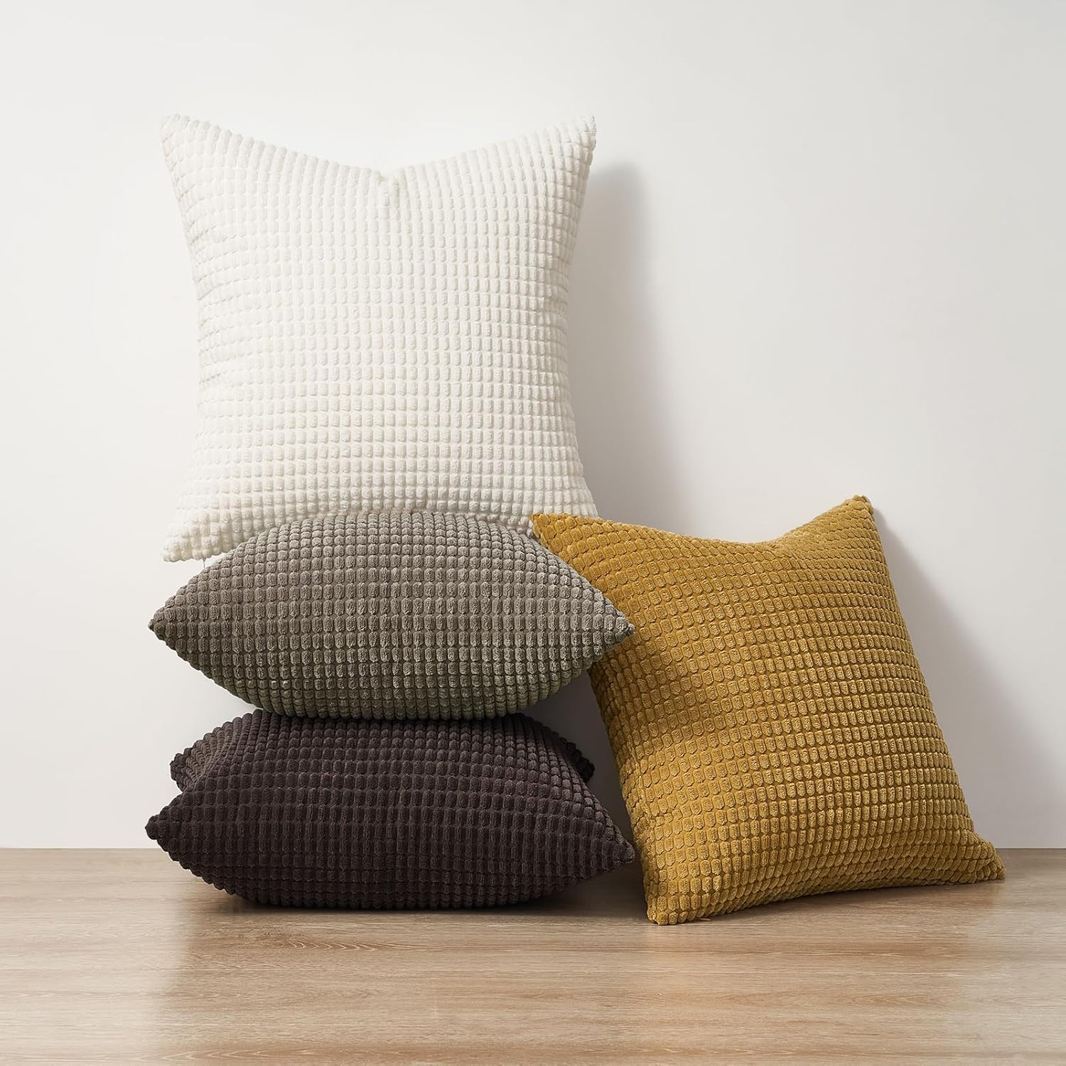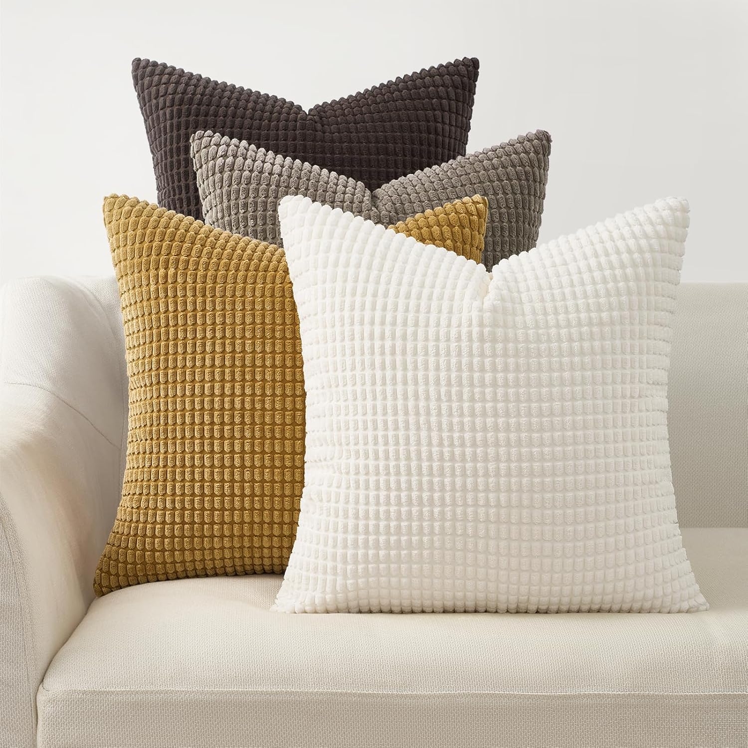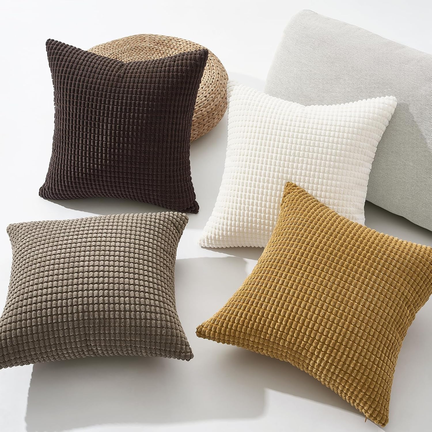 Topfinel Kissenbezug 45x45 cm Braun-Beige 4er Set Kordsamt Kissenbezüge Kissenhülle sofakissen dekokissen deko für Sofa Schlafzimmer Wohnzimmer Kinder flauschig Farbverlauf